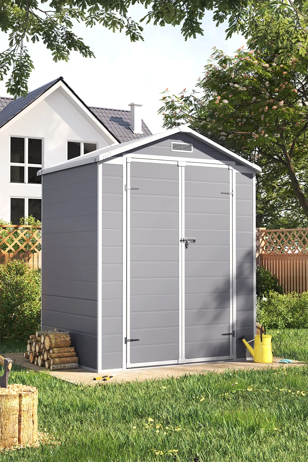 Ventilation & Window: This shed also features ventilation panels to ensure proper air circulation, preventing musty odors and mildew growth. A built-in window allows light to enter, creating a pleasant, well-lit atmosphere.