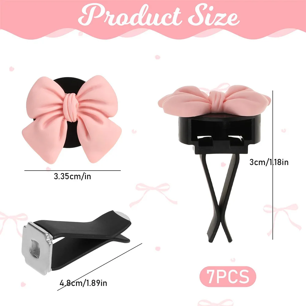 7Pcs Pink Bow Car Air Vent Freshener Clip Reusable Air Condition Vent Decoration for Car Interior Decoration Accessories