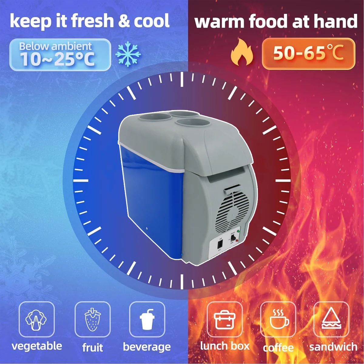 Features: dual-use car, cooling and heating functions, large capacity 6L