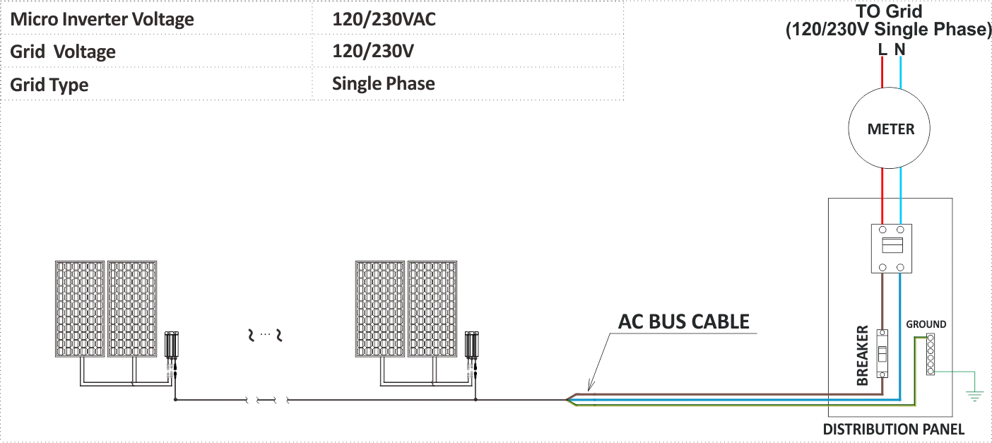 (1) This equipment is an ON-GRID Microinverter and must be correctly connected to the power grid to work properly. When the power grid stops working, it will also stop generating.