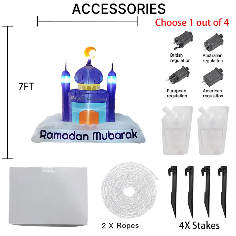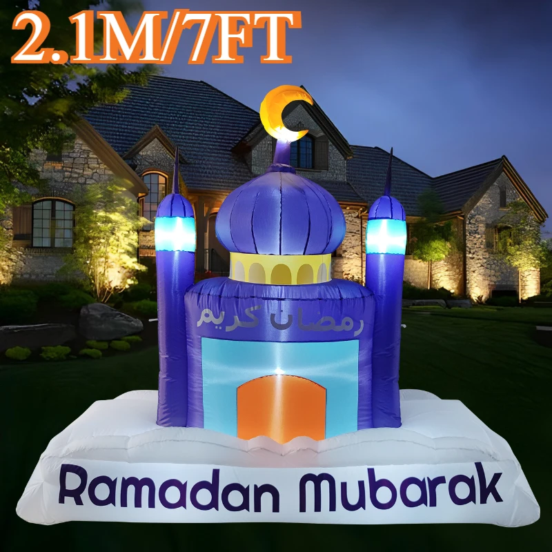 7FT Muslim Mubarak Inflatable Toy Islamic Castle Architecture Eid Al Fitr Outdoo