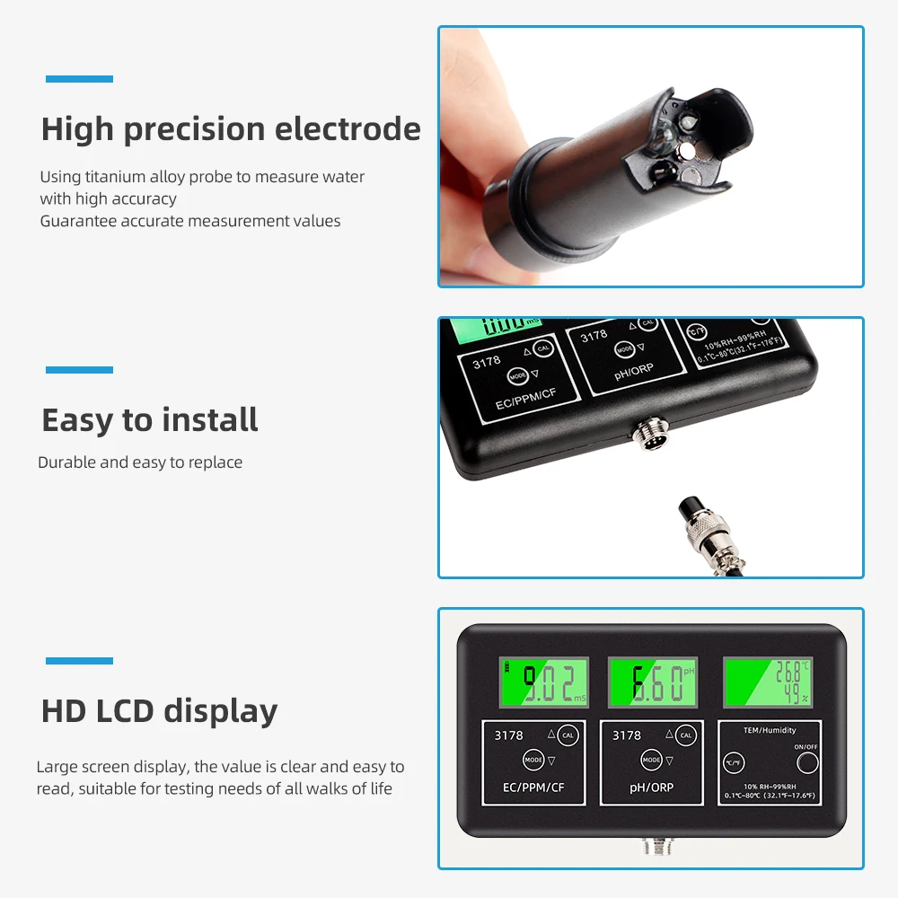 7In1 Water Quality Tester Water Analyzer Ec/Tds/Cf/Ph/Orp/Humidity/Temp Meter wi