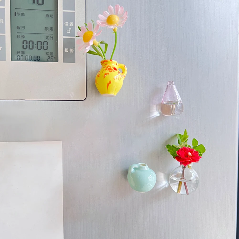 Cute Ceramic Vase Refrigerator Magnets Tiny 3D Fridge Magnets Refrigerator Stickers for Refrigerator Decoration Kitchen Office