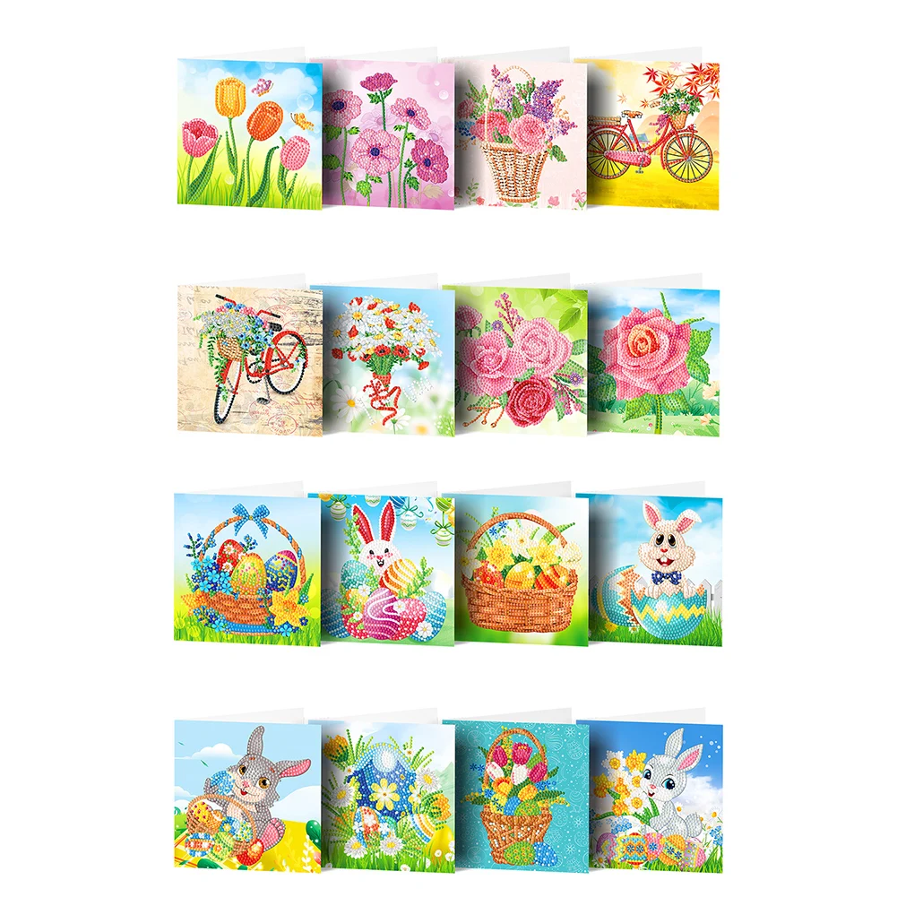8Pcs Diamond Painting Easter Rabbit Greeting Cards Set Special-Shaped Partial Dr