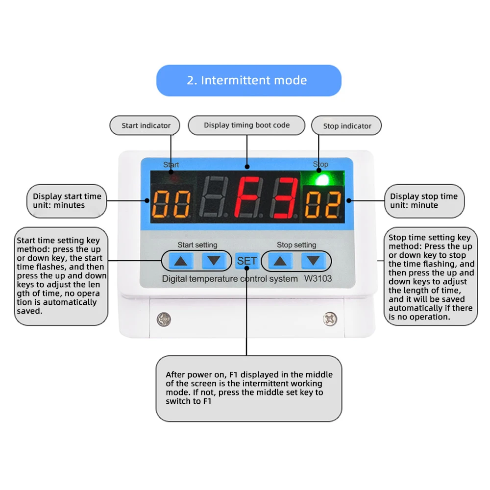 2. Four major functions: temperature control function/intermittent work/time off/time on