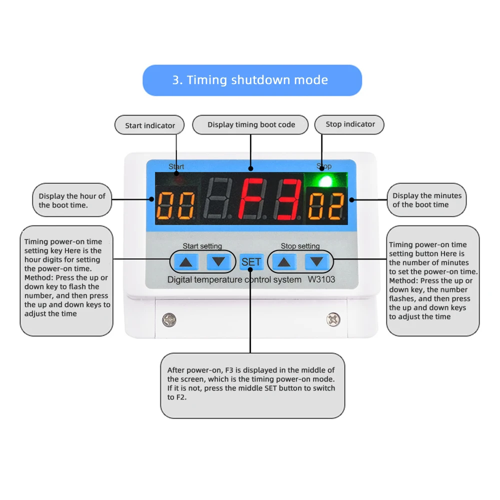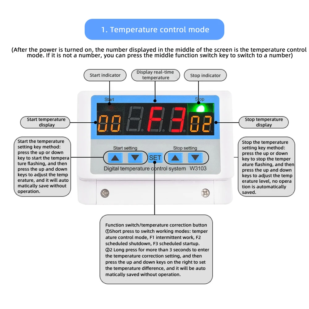AC 220V DC 12V 24V Digital Thermostat 30A Temperature Controller Temperature Control Switch Wall Hanging Max 6600W W3103