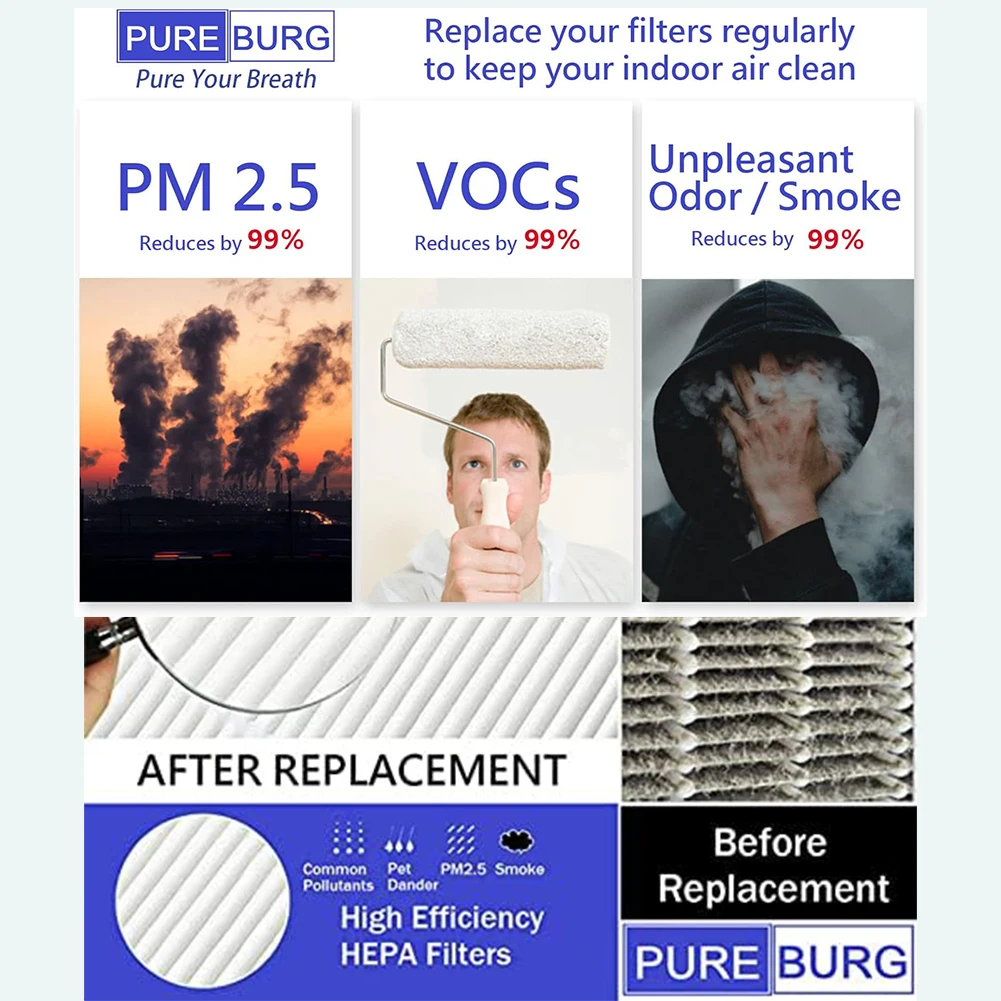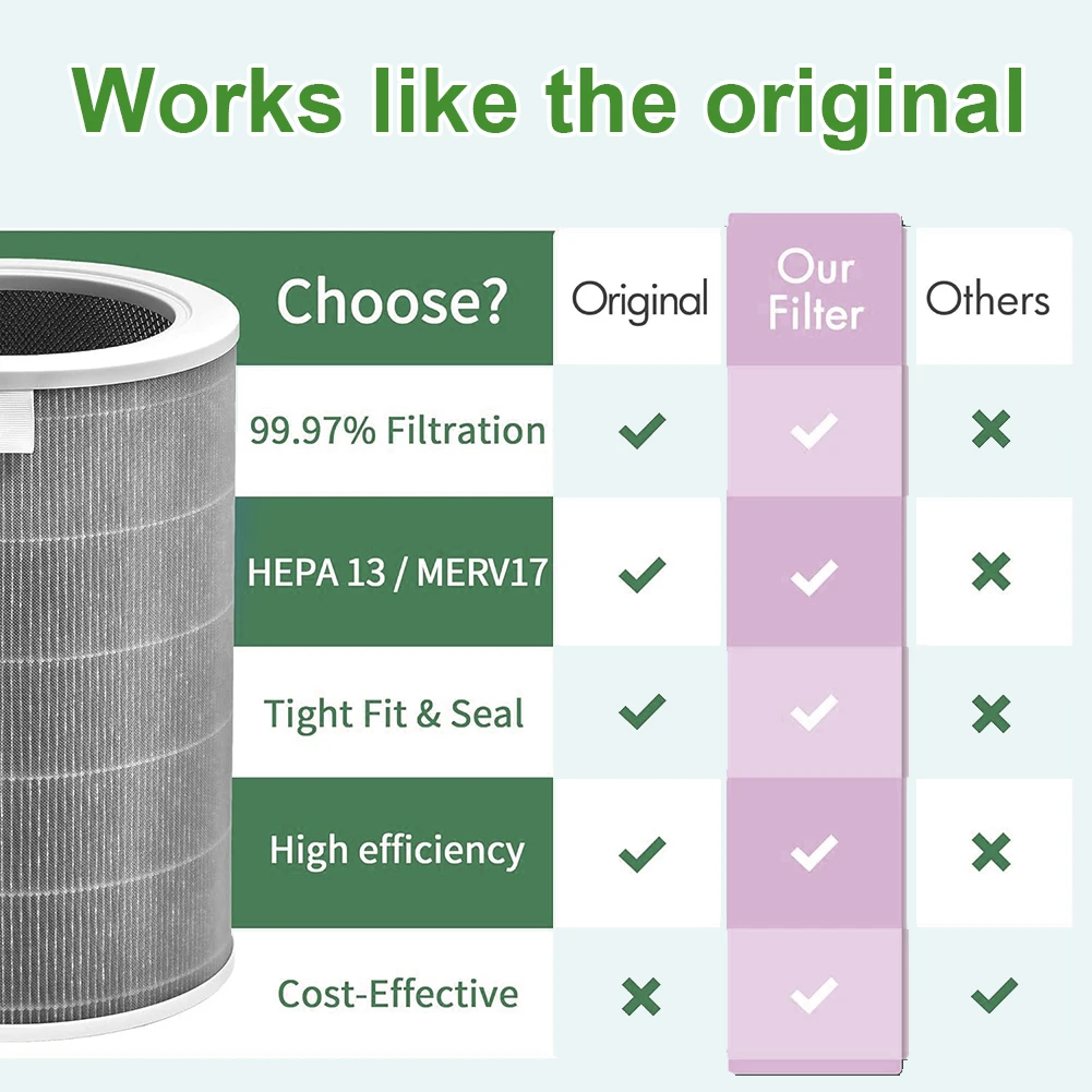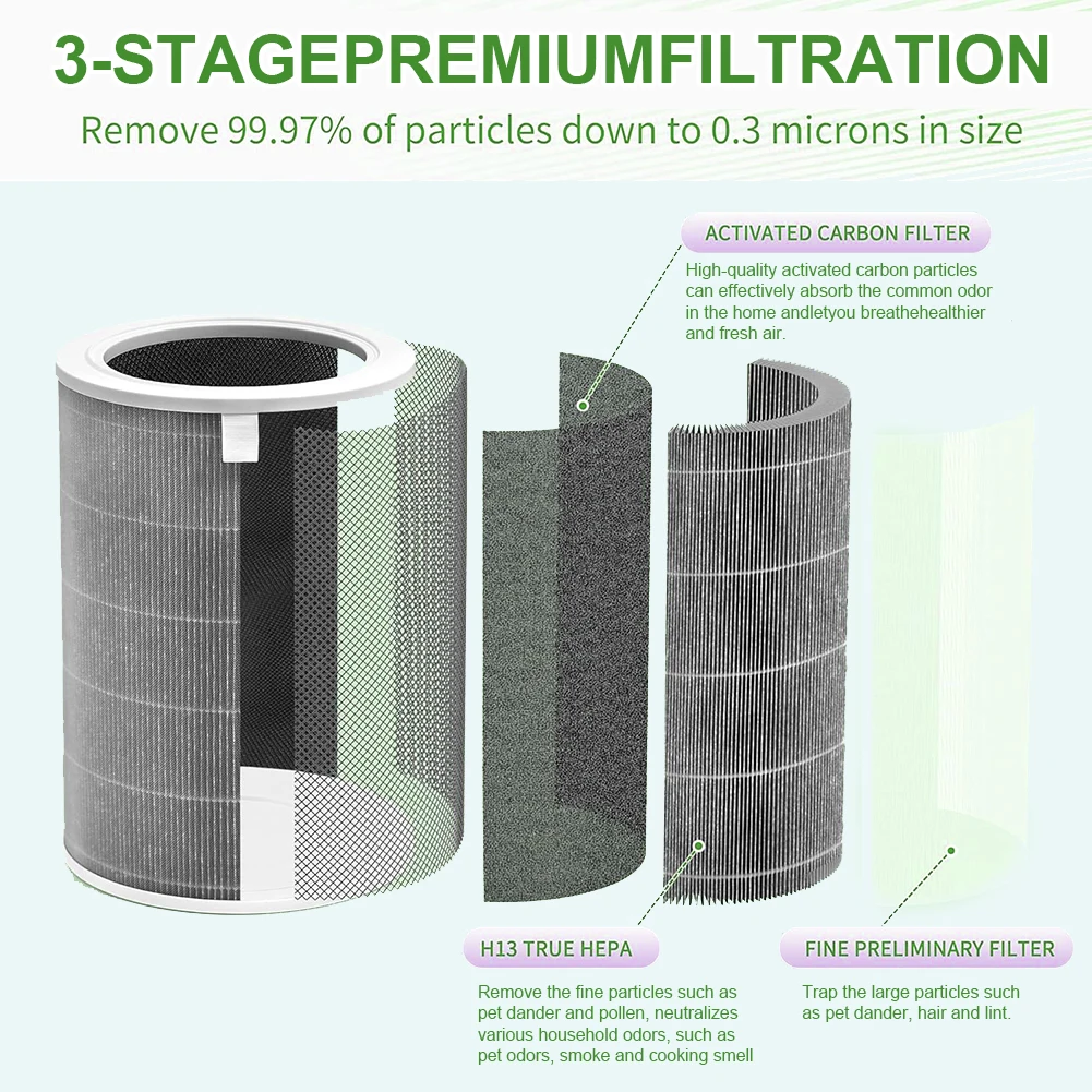 2. Exceptional Purification: Achieving a purification efficiency of up to 99.5%, the air purifier replacement filter can trap pollutants as small as 0.02 microns, providing exceptional air quality.