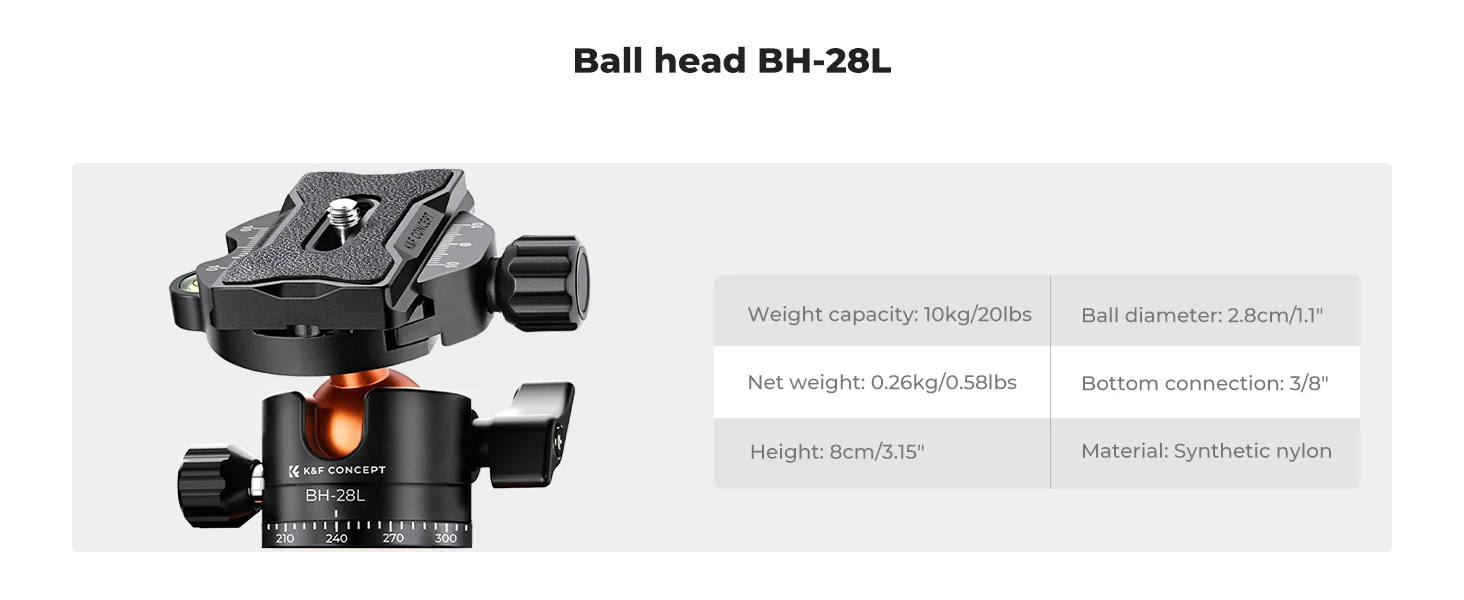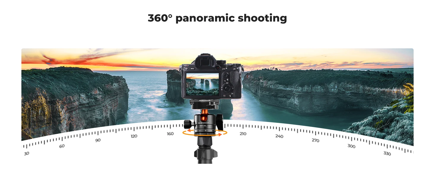 * The 28mm large sphere of the gimbal ensures the stability of the gimbal; the new oil-free damping design allows the camera to rotate smoothly and accurately. The 360-degree horizontal scale at the bottom of the gimbal makes it easier to take panoramic photos, which can produce more stunning effects than ultra-wide-angle lenses. The load-bearing capacity of the pan/tilt can reach 10Kg.