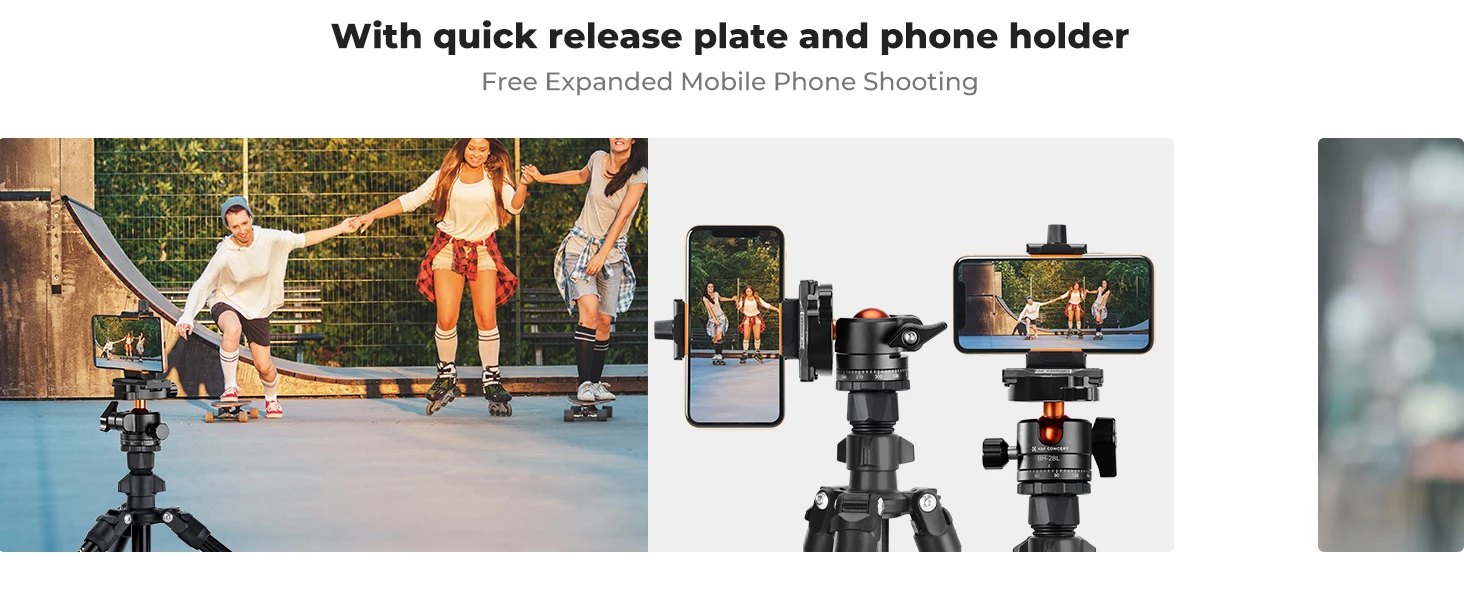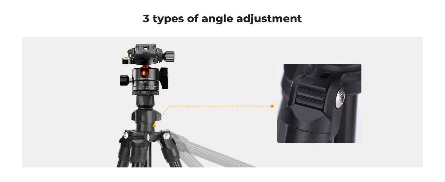 * The dense sponge handle prevents hands from freezing during outdoor shooting in winter and prevents slipping due to sweating in summer. It is more comfortable to use when shooting outdoors. The special-shaped leg design not only enhances the stability and strength of the tripod, but also reduces the weight of the tripod.