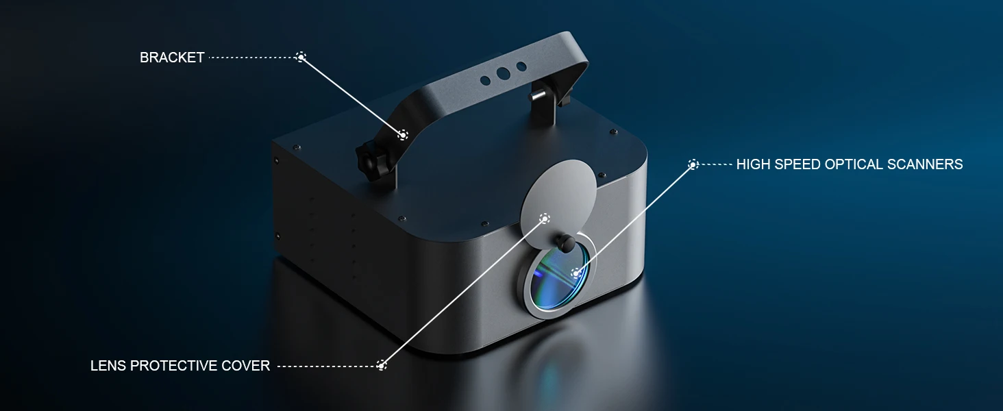 Function: Animation laser, with high-speed optical scanner, can create animation graphics, hundreds of beam display and graphic display patterns, and has the functions of automatic, automatic activation, rotation and color rotation. Movement, rotation, zoom (+/-), drawing and speed, etc.