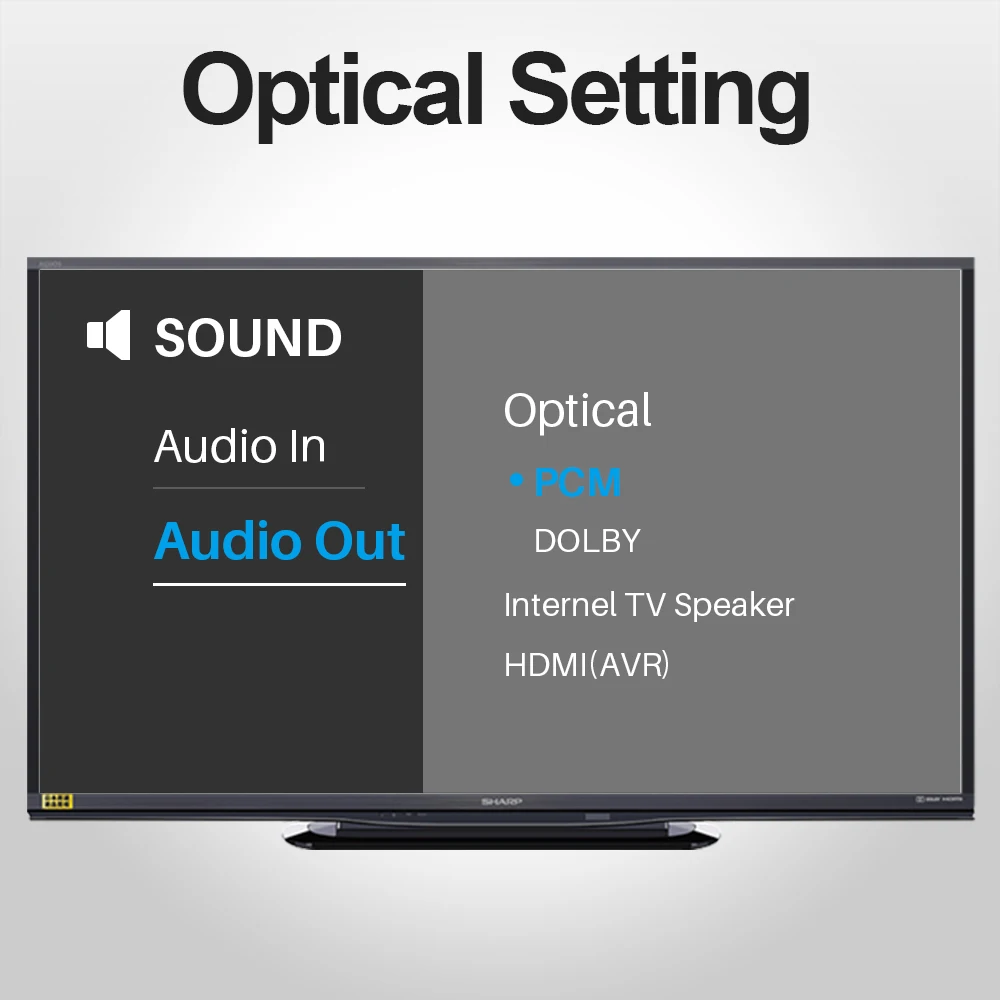 Make sure to set audio format to PCM or Stereo When connect a TV with Optical or Coaxial output.