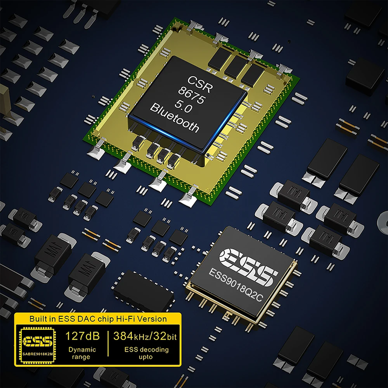 Built-in induvidual DAC chip ESS SABRE9018Q2C which are widely recognized by audiophiles as the gold standard for audio performance. LDAC is a codec that allows you to stream high-resolution audio high-resolution wireless audio up to 24-bit/96kHz, it's the highest standard for Bluetooth devices. Note: If you want to use LDAC, aptx HD and aptx LL codec to work, then your receiving device must support LDAC, aptx HD and aptx LL, otherwise LDAC, aptx HD and aptx LL will not work.