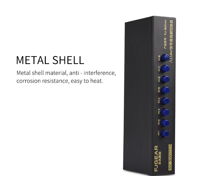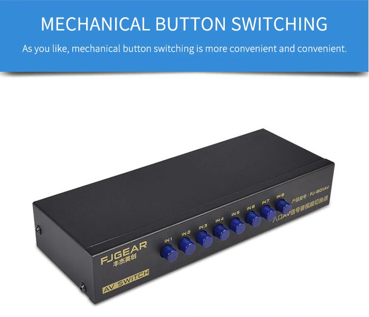 This Composite AV Switcher is of high quality. with this AV switcher you can easily select between 2/4/8 AV inputs and enjoy the high quality video&audio.