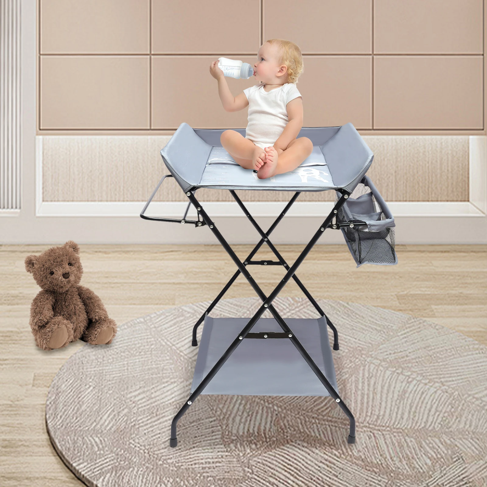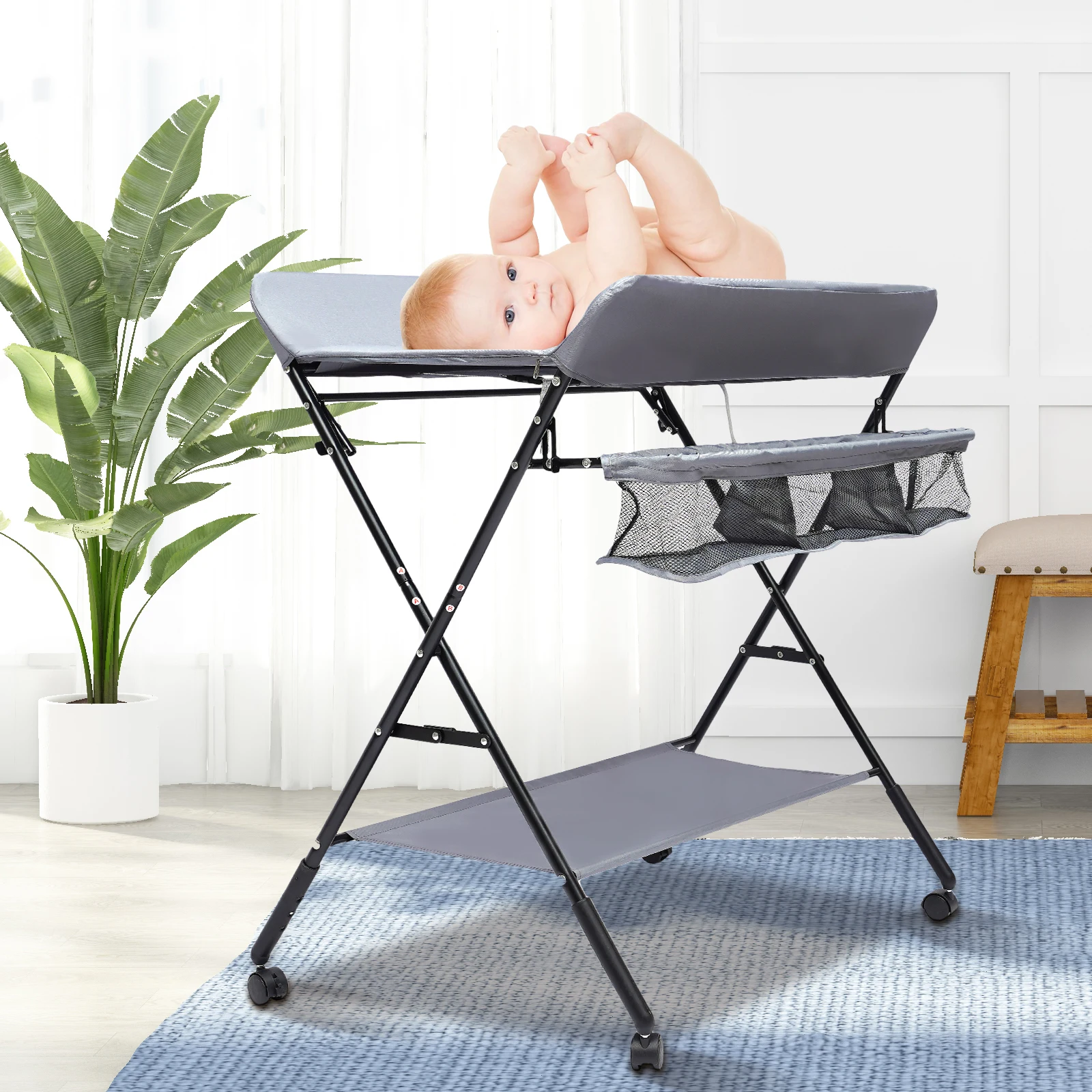 Baby Changing Unit Folding Changing Unit Mobile Changing Table with Mat for Stor
