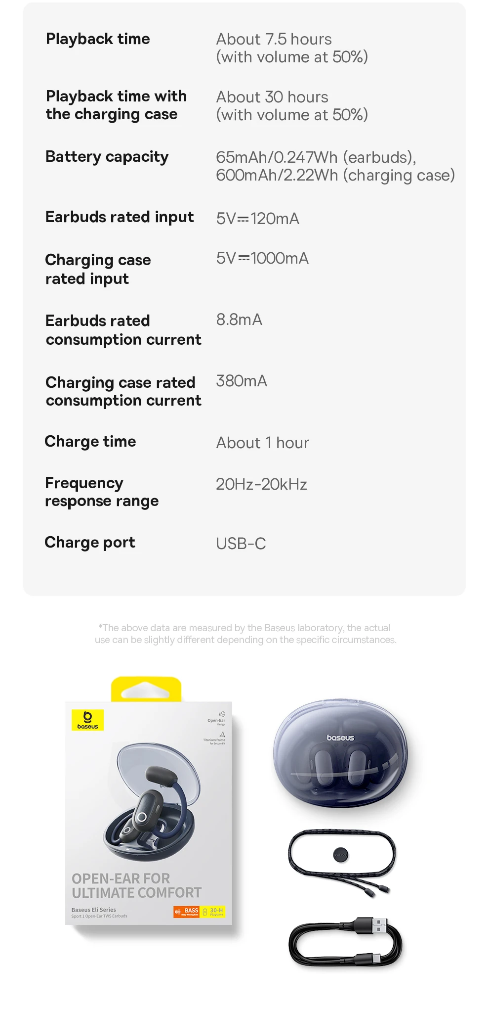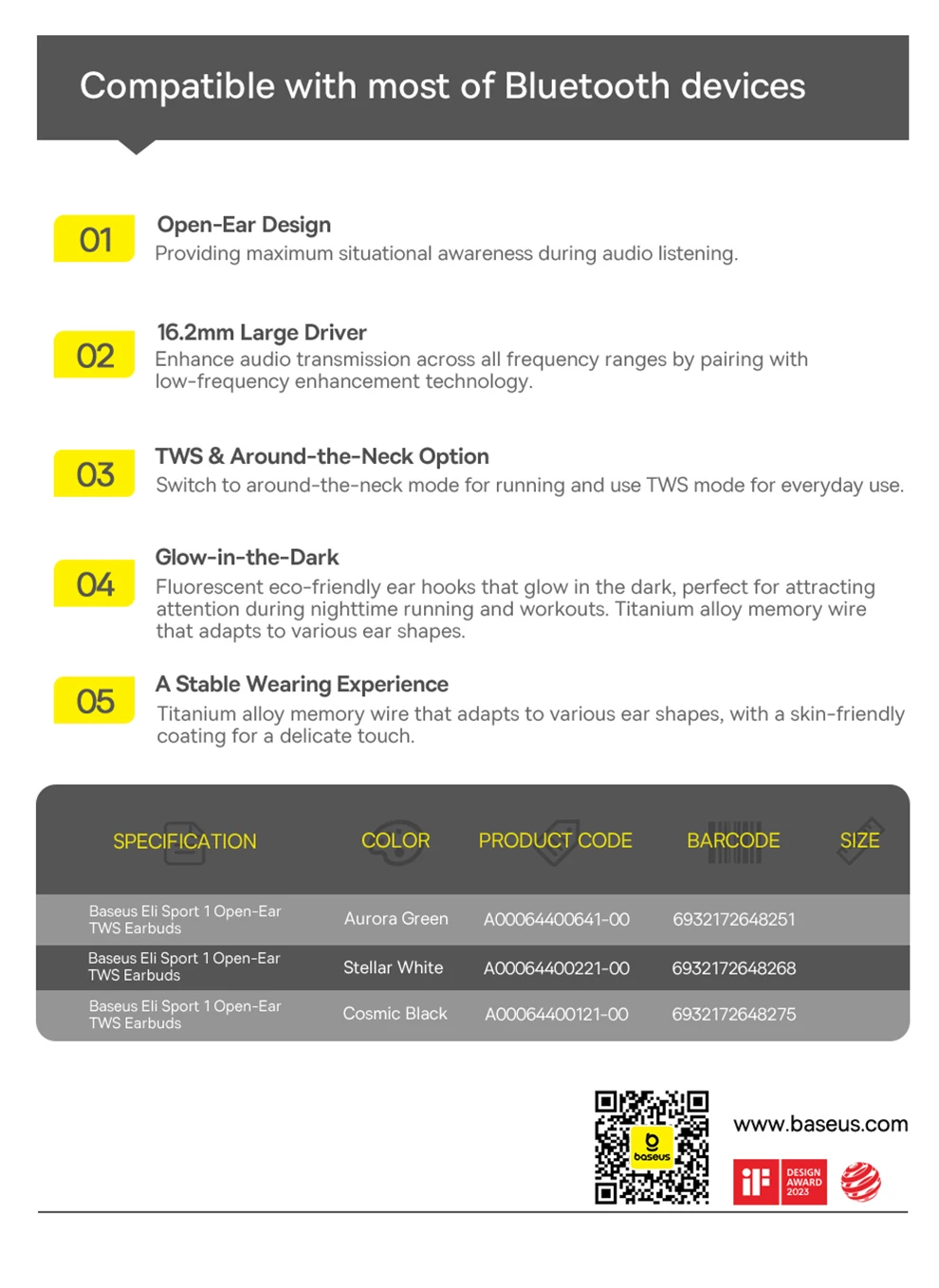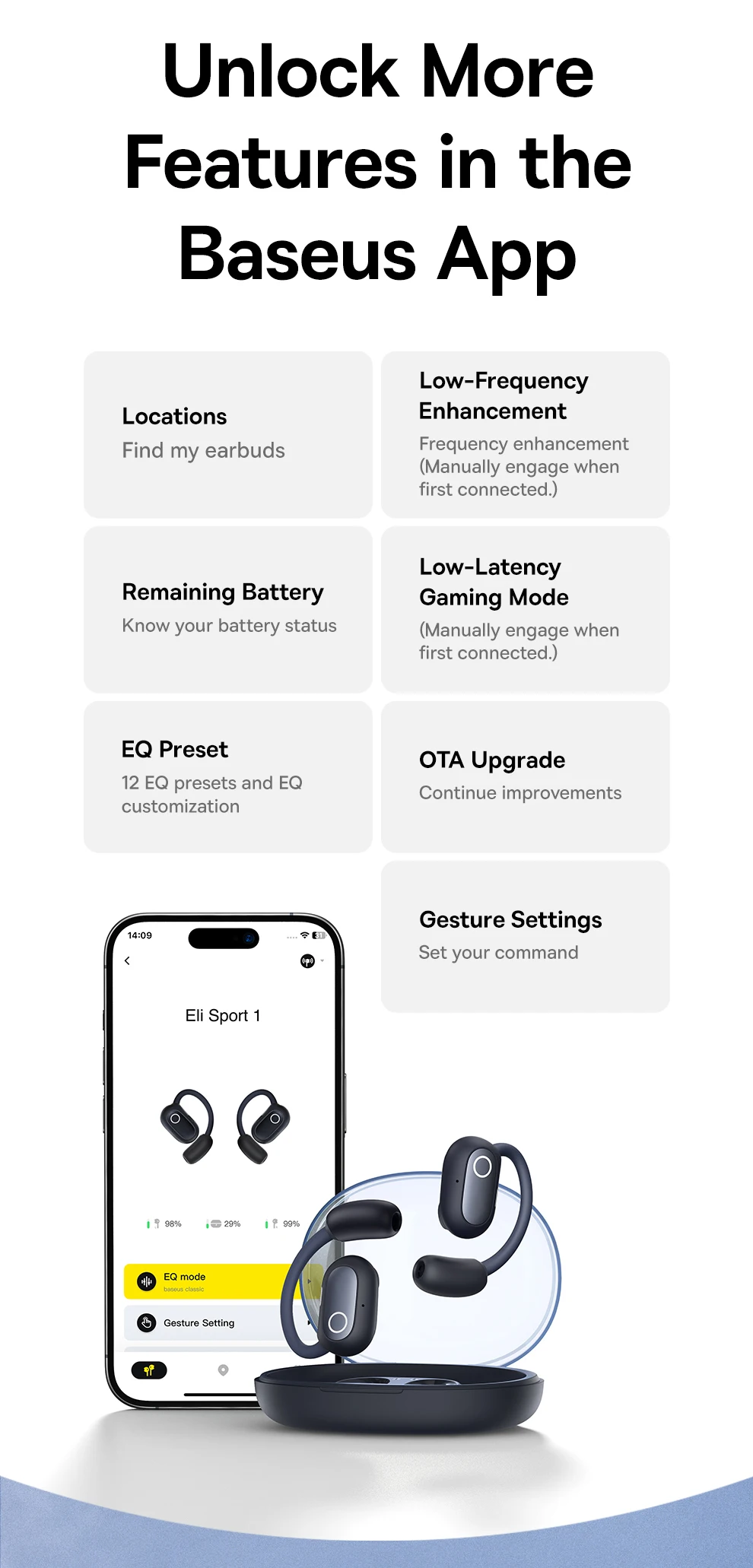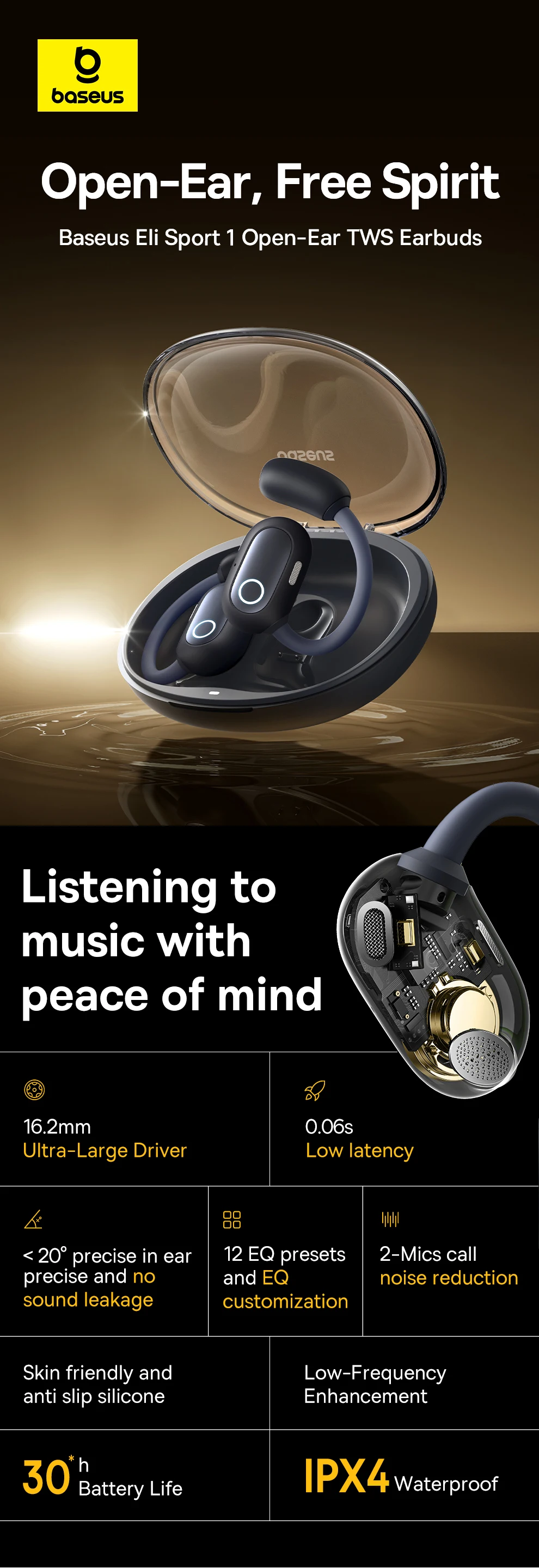 Baseus Eli Sport 1 Open Ear Headphones OWS Bluetooth 5.3 Wireless Earphones Air