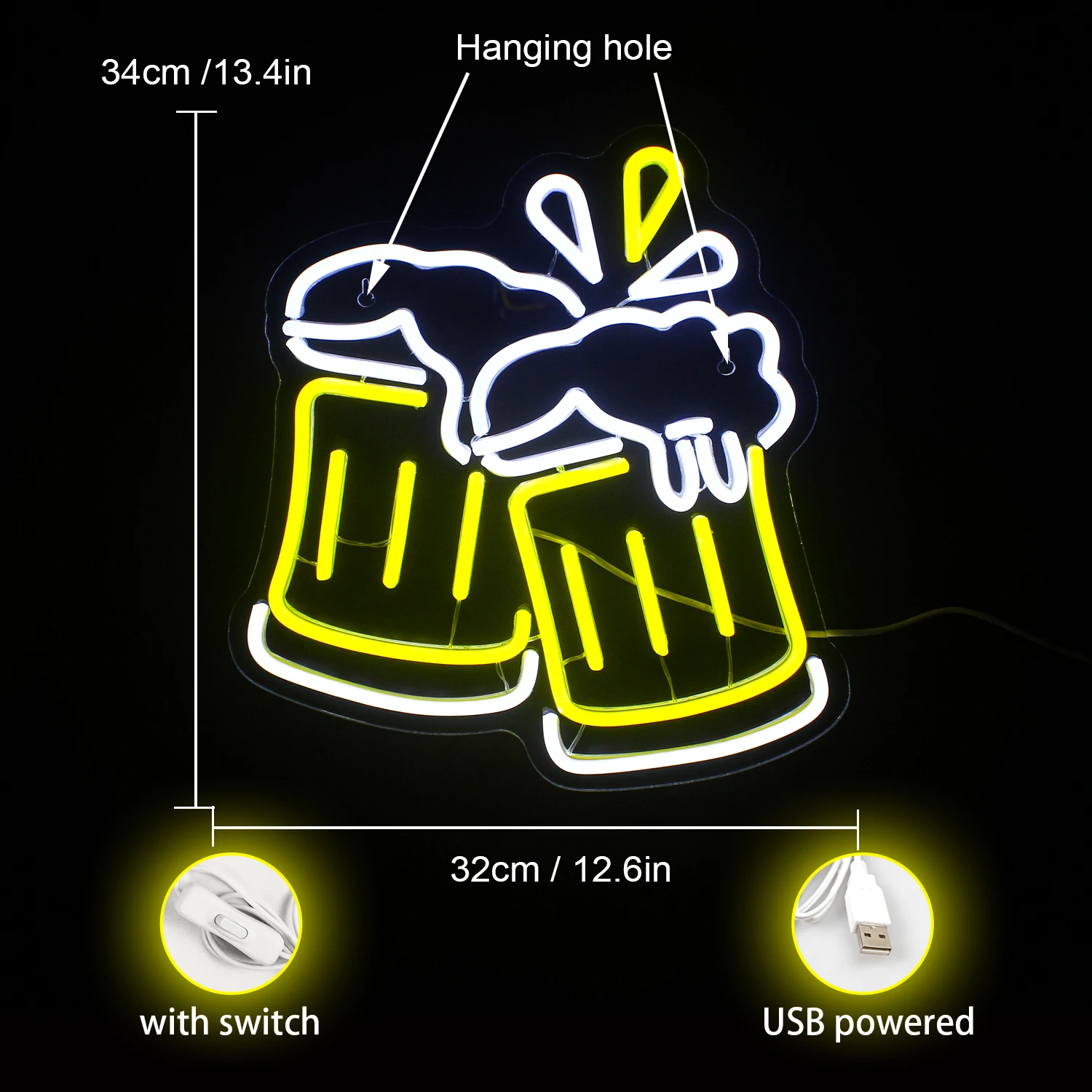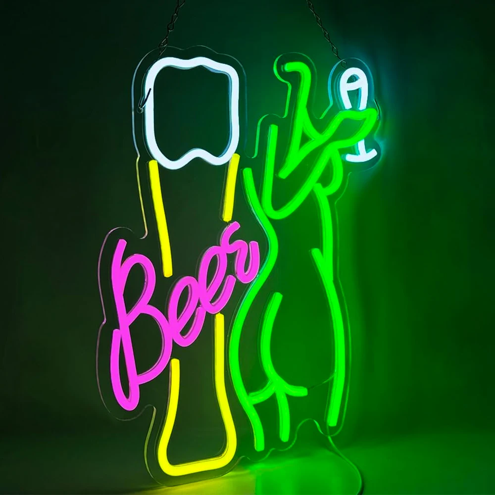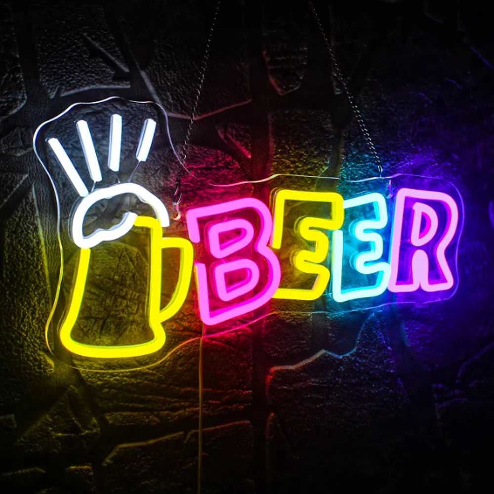 Beer Neon Sign Beer LED Neon Sign is the perfect wall decor to bar and party, white yellow lighting design is attractive, creating a fun and relaxed atmosphere. Beer Cheers light up sign is the eye-catching advertising signboard of your room, bar and restaurant;