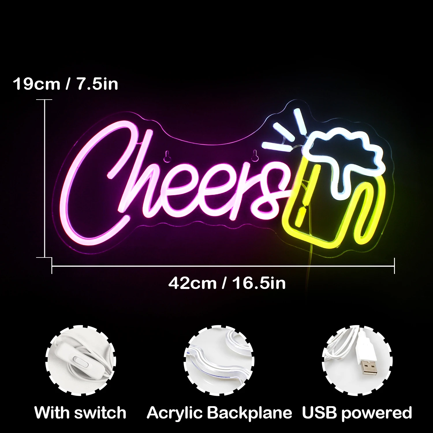 Perfect Decor & Gifts This cheers beer glass neon lights for wall is a perfect decoration for man cave, home pub, bar, club, party, windows, shops, restaurants. Special design Neon Lights can also be a wonderful birthday, Christmas anniversary gift to families, lovers, friends, man etc.
