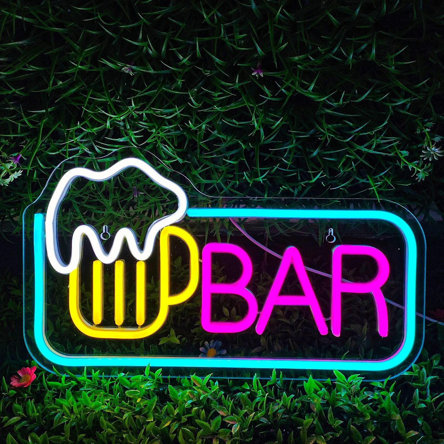 Premium & Safe Materials The Neon Sign is made of premium acrylic back sheet and soft LED silicone strips. Bright and safer, durable, power saving, no noise and no heat. Our led light sign is the coolest decor to your bar, pub and room without risk of fire or glass damage;