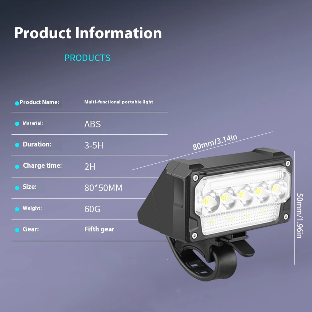 2.Versatile Lighting Modes: Switch seamlessly through five different modes on this bike flashlight to adapt to different scenarios. Simple press button operation for easy mode adjustment.