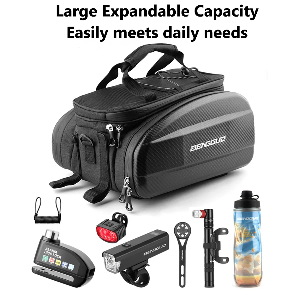 2.EVA Hard Shell: Made from sturdy EVA material, this bike rack bag resists compression and deformation, protecting your essentials.