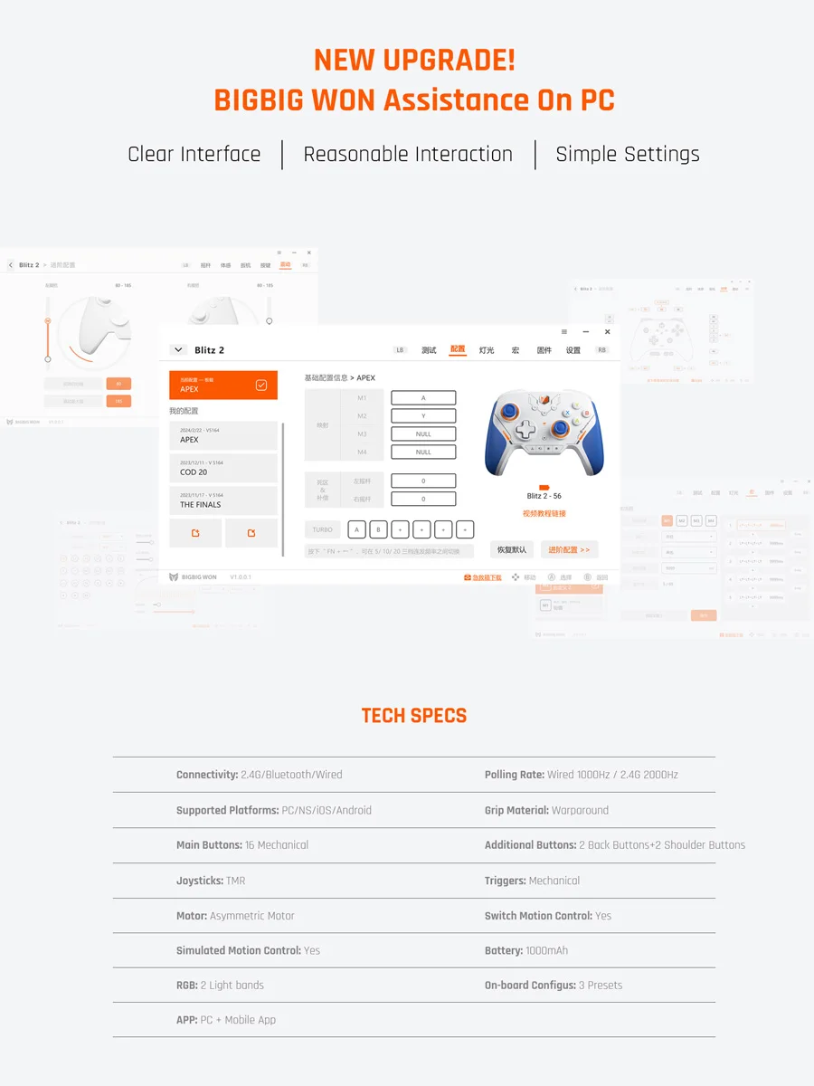 BIGBIG Won Blitz 2 Pro Wireless Game Controller 2000Hz Return Rate APEX Somatose