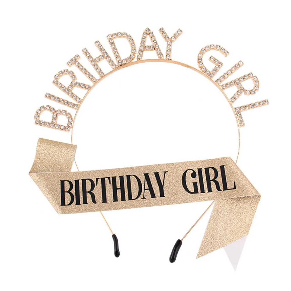 Birthday Girl Sash and Rhinestone Tiara Crown Glitter Birthday Sash Gifts for Gi