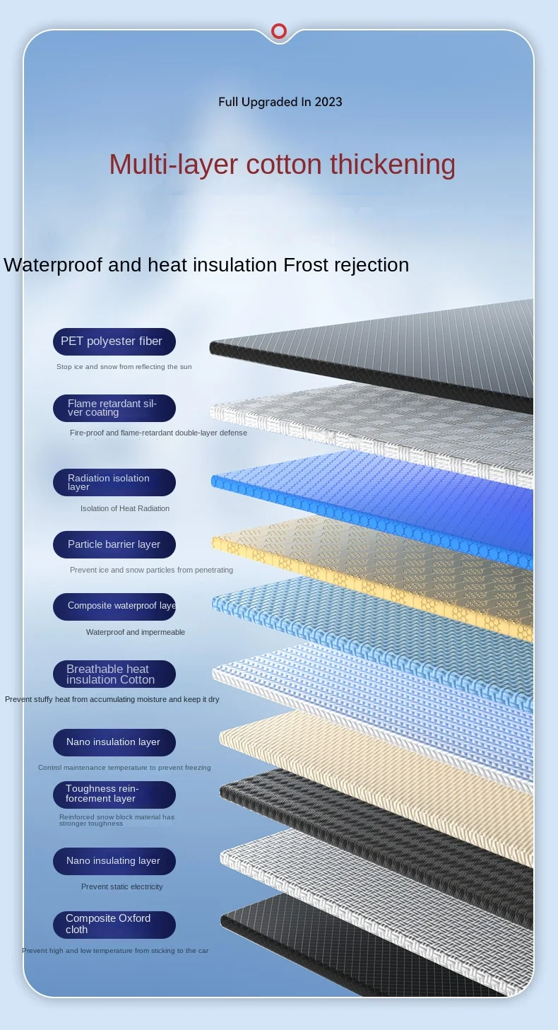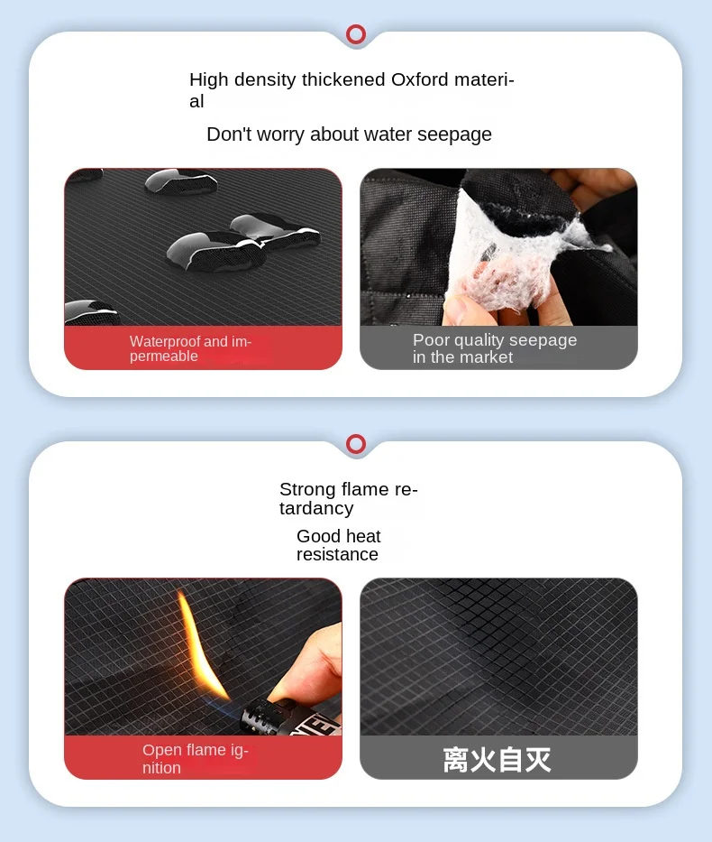 1, Oxford cloth material, does not hurt the car paint, sun protection, heat insulation, rain and snow, dust, scratch resistance, strong tensile resistance.