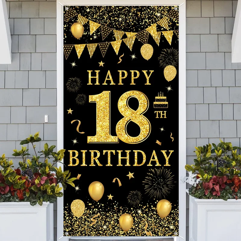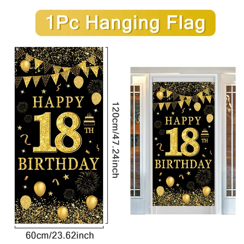 Black Gold Flag Door Hanging Banner 18Th 30Th 40Th 50Th Birthday Party Decoratio