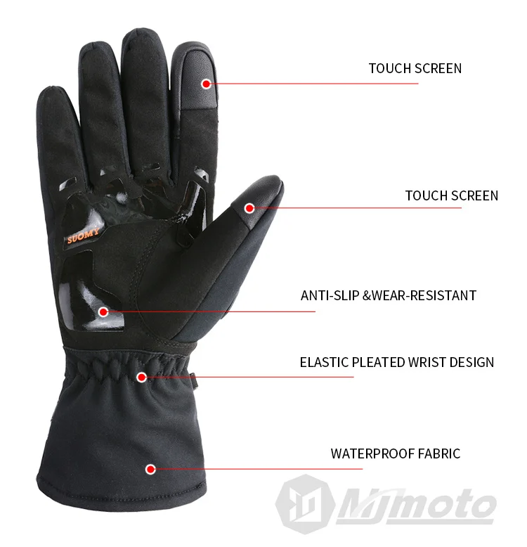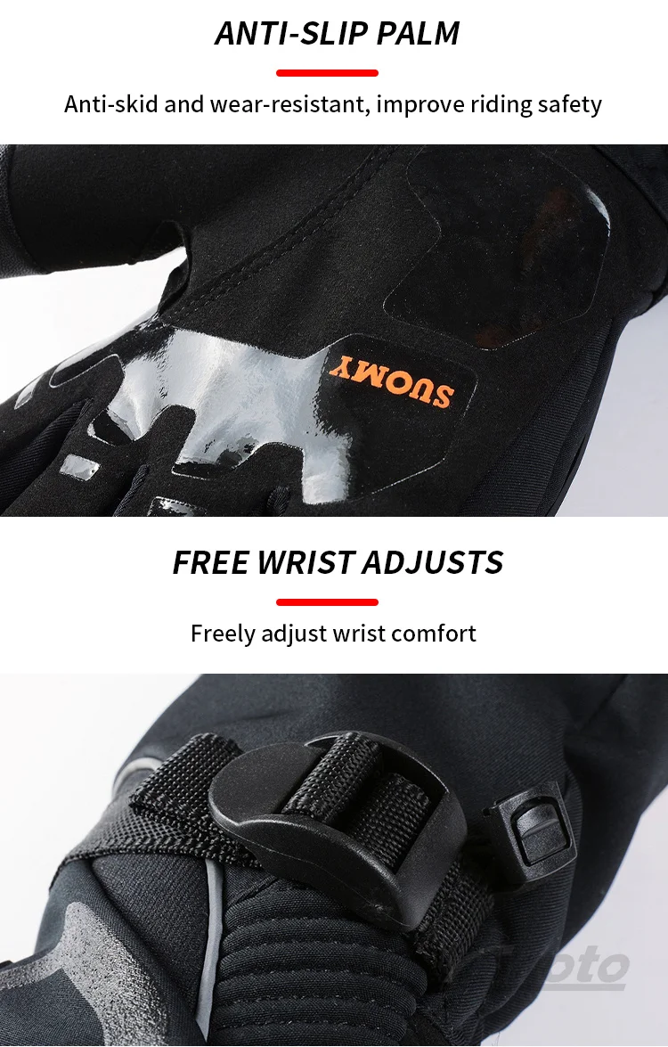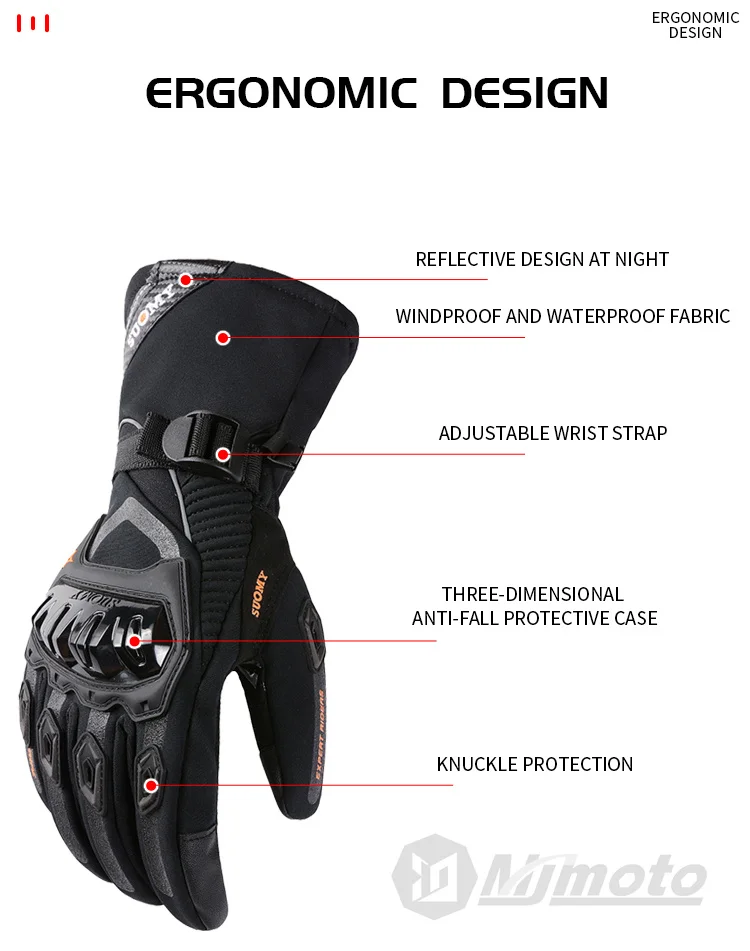 Black Winter Warm Motorcycle Gloves Long Full-Waterproof Windproof Protective Mo