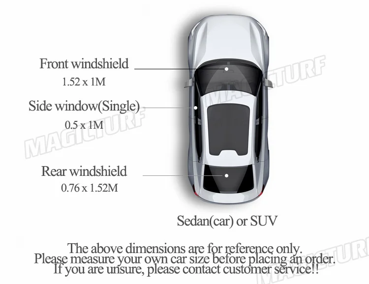 50CM*1M (19.68IN*3.3FT), 50CM*2M (19.68IN*6.6FT), 50CM*3M (19.68IN*9.9FT)-----Window passenge/ Windows small driver