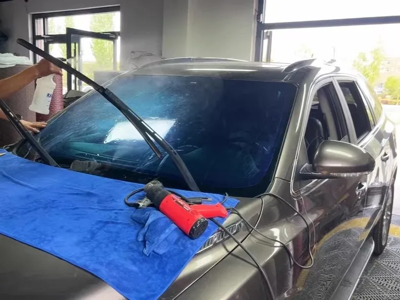 7. Finally, check for any bubbles, wrinkles, scratches, etc. Between the car film and glass. If there are no issues, use a towel to wipe the water off the edges of the glass.