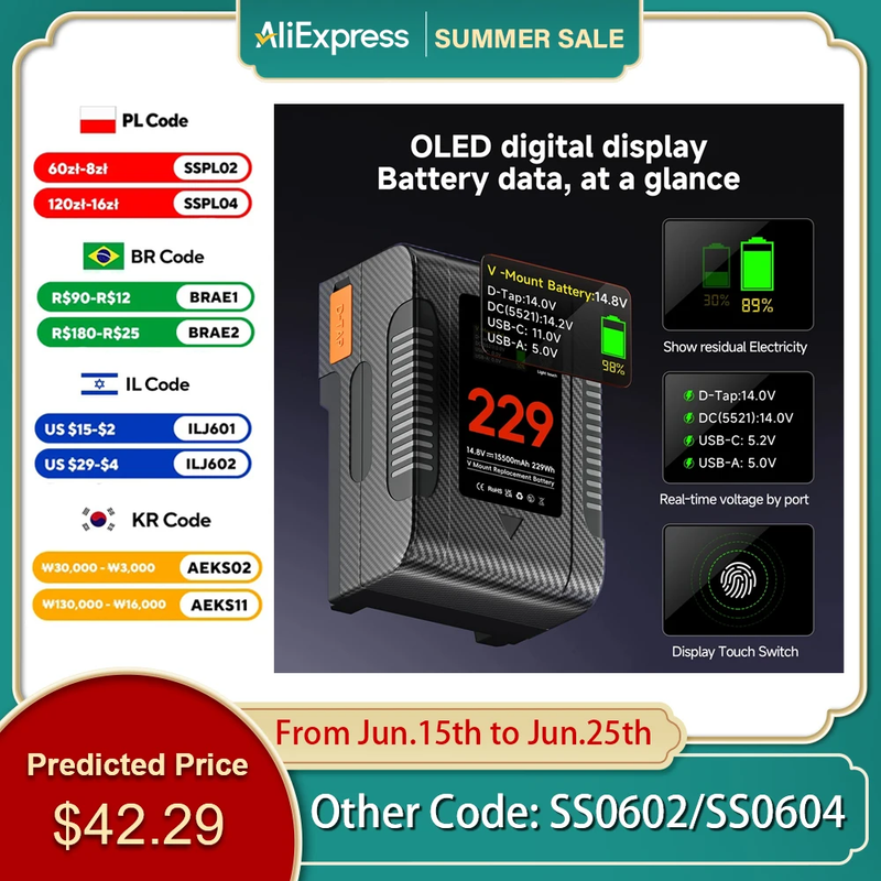 Type: 229Wh BP-229 V Mount Battery Pack