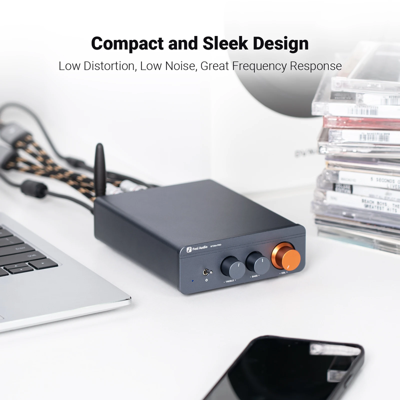 Fosi Audio BT20A Pro is the upgraded version for BT20A. All-NEW Aluminum Appearance. MAX Power Output: 300 Watt x2, Amplifier Chip: TPA3255.