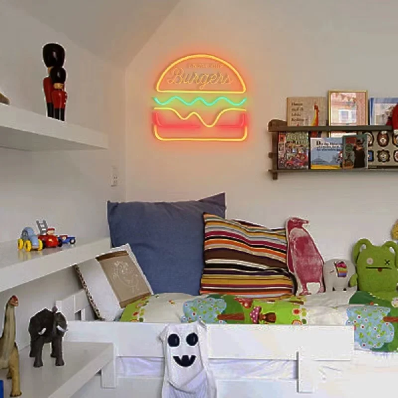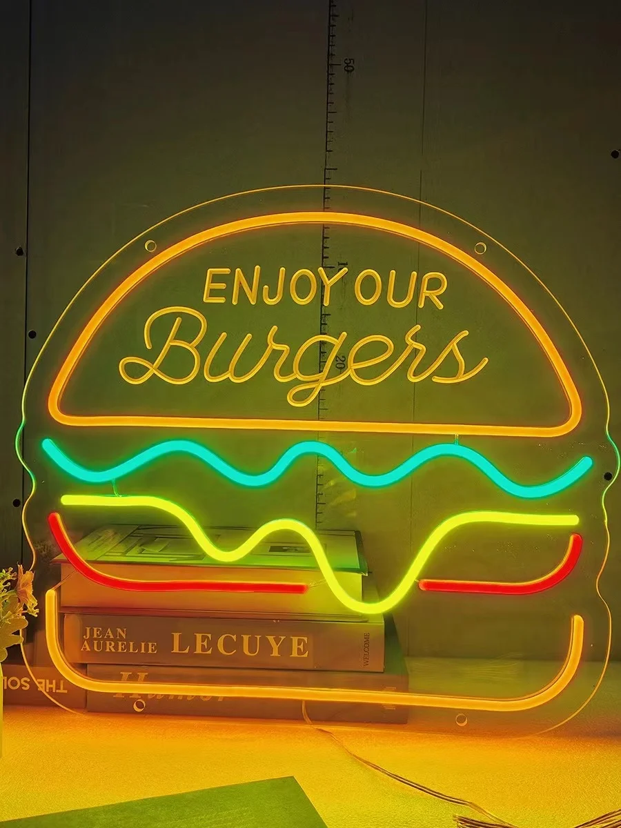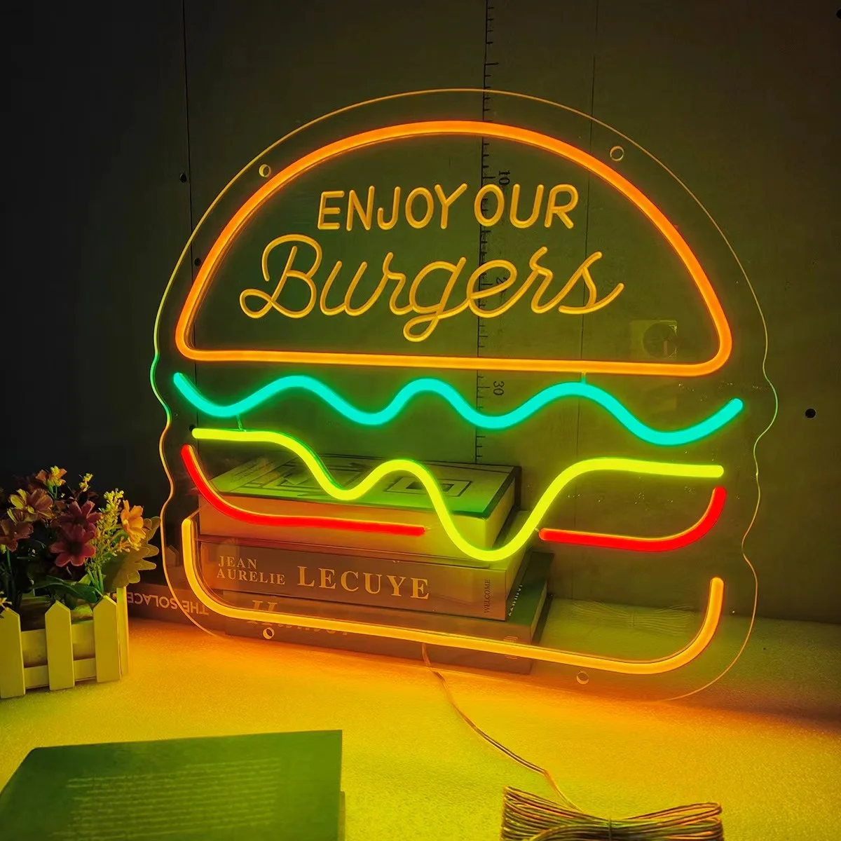 Business Shop Party Neon Sign Hamburger Pizza Fries Neon Light For Restaurant Eating House Wall Led Sign Food Shop Cinema Decor