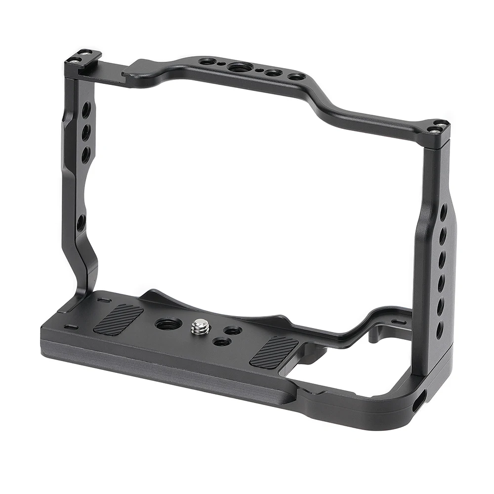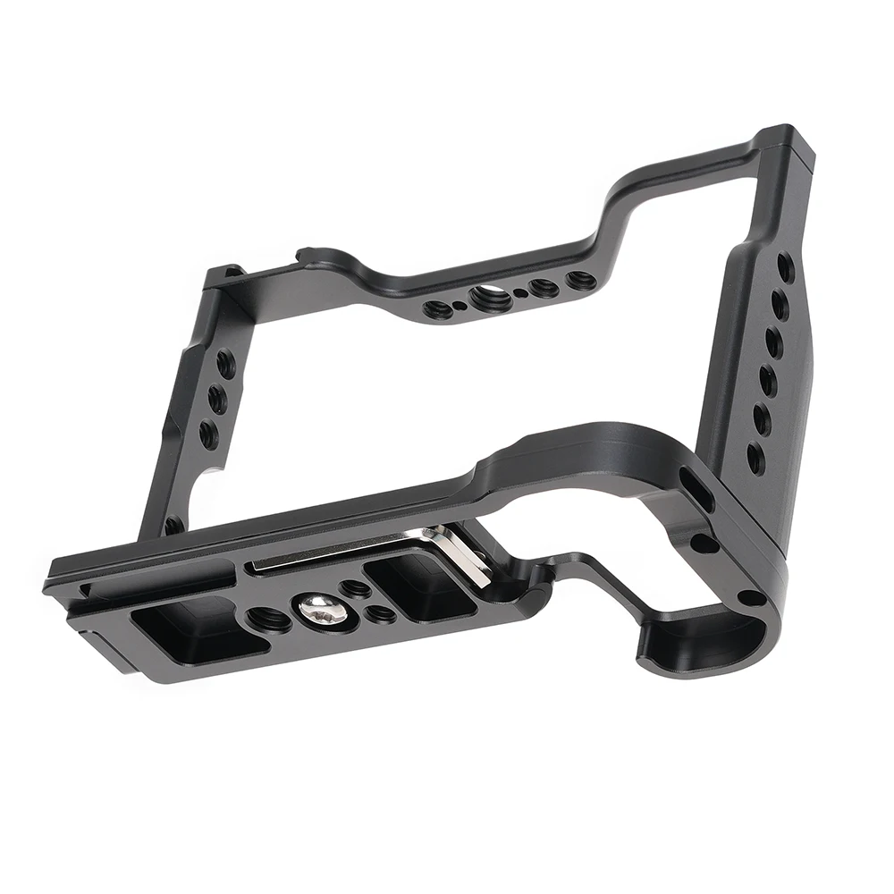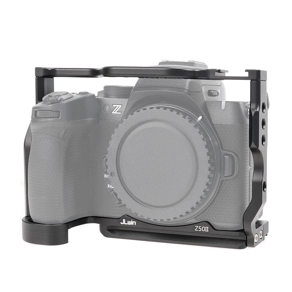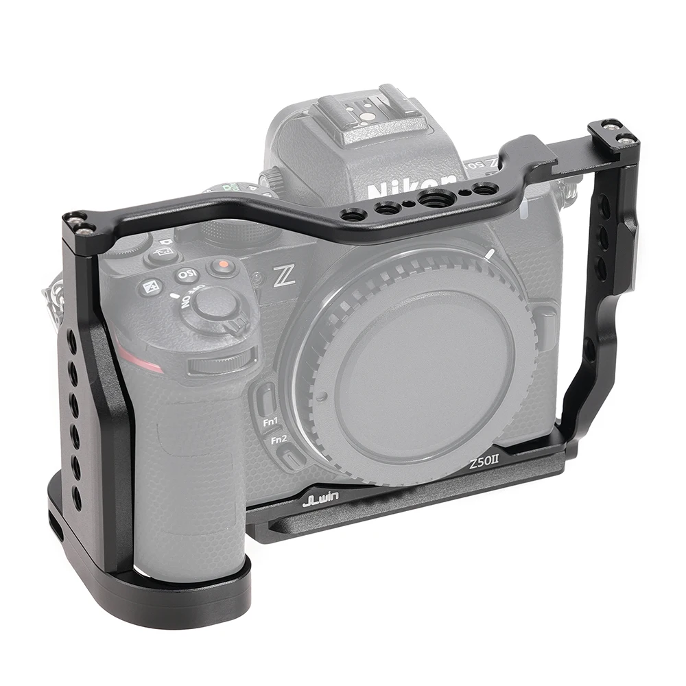 Aluminum Camera Cage is specifically designed For Nikon Z50II Camera. It is a full cage which is lightweight and perfectly form-fitting the camera. It is equipped with multiple 1/4" -20 and 3/8" -16 threaded holes, ARRl locating hole and cold shoe for accessories mounting.