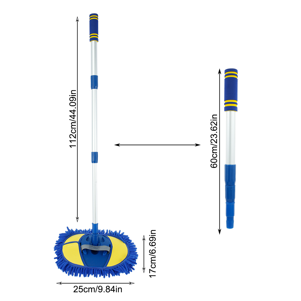 Specification: Material: aluminum alloy, microfiber Color: blue Mop Head Size: 17 x 25cm Pole Length: 60cm(23.6 inch) Pole Extend Length: 112cm(44 inch) Note Please allow 1-3cm measuring deviation due to manual measurement. Due to the different monitor and light effect, the actual color of the item might be slightly different from the color showed on the pictures. Thank you!