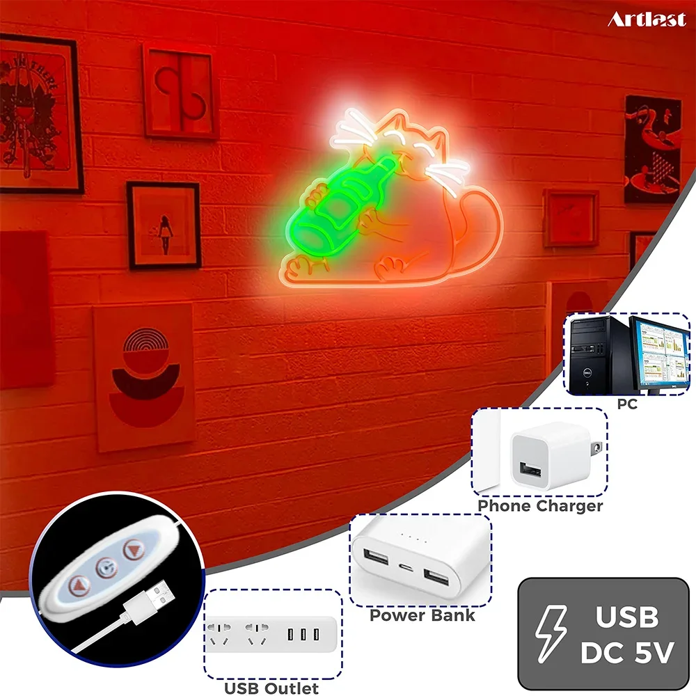 Cat Neon Sign LED Neon Light for Wall Decor Cute Cat Neon Sign Decor for Bedroom