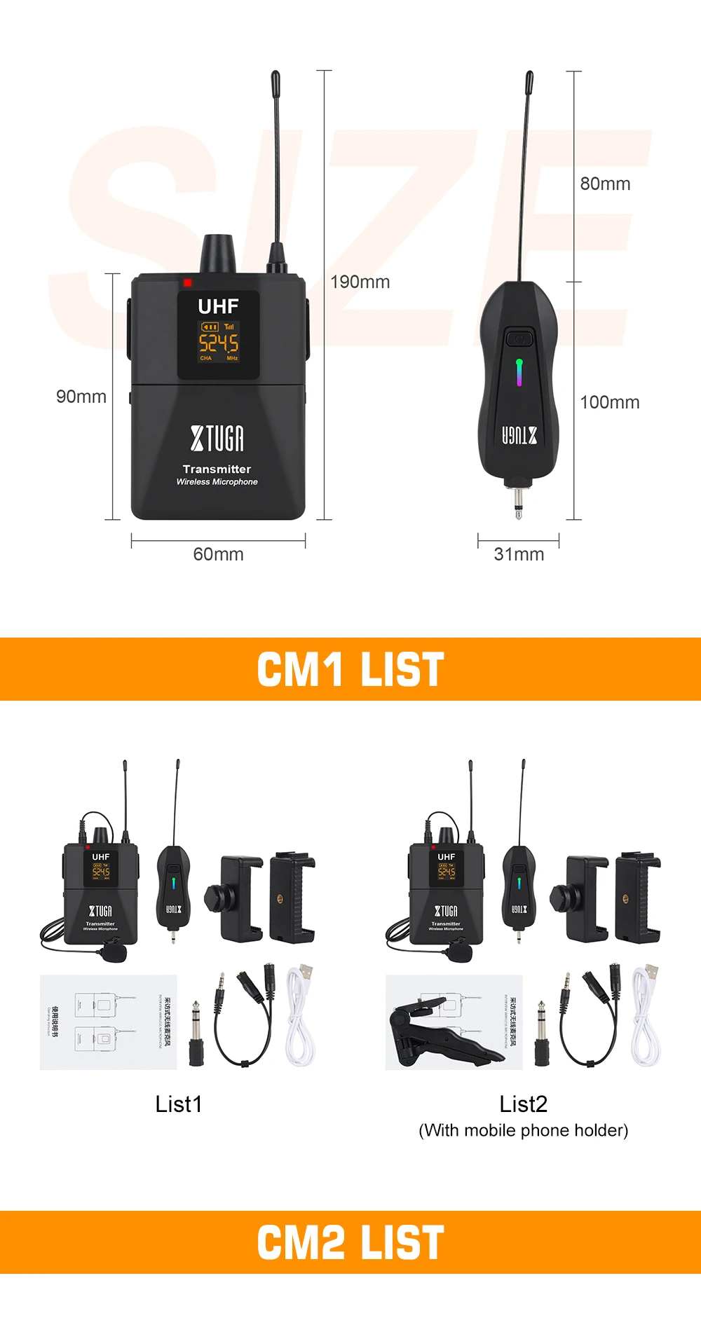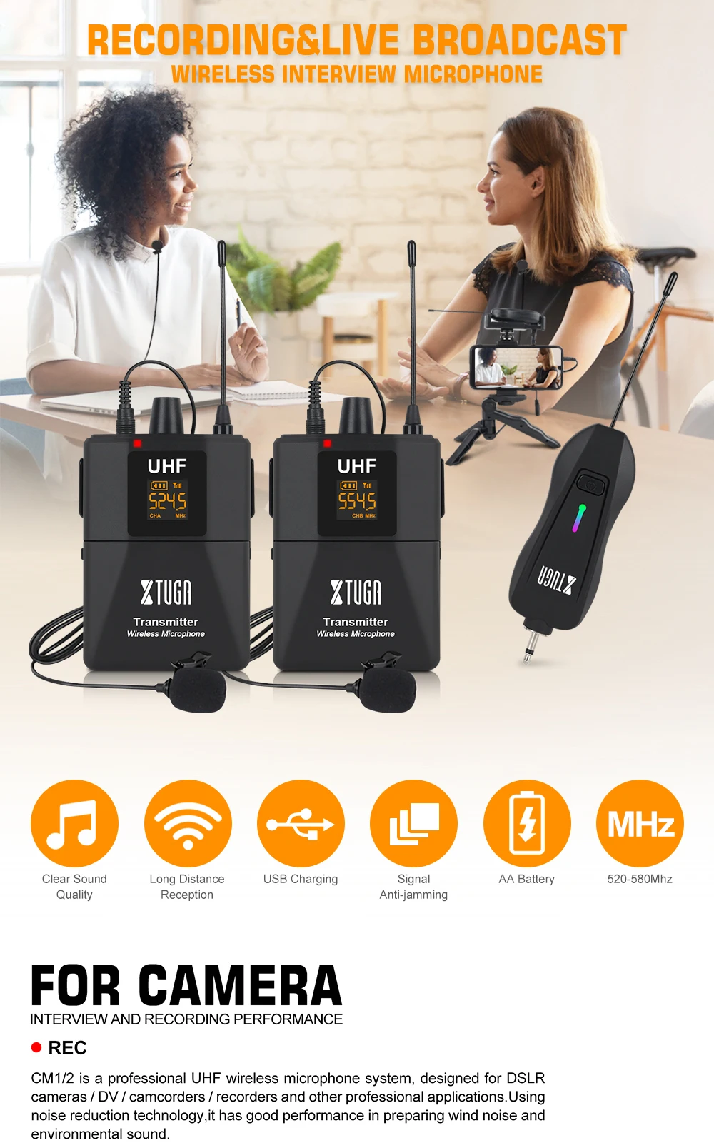 1.CM1/CM2 Professional wireless photographic and recording microphone for photography, video recording, news interview, and classroom lectures and other occasions, with the transmitting distance of 50 meters.Works well with medium and high-end DSLR camera and camcorder etc.
