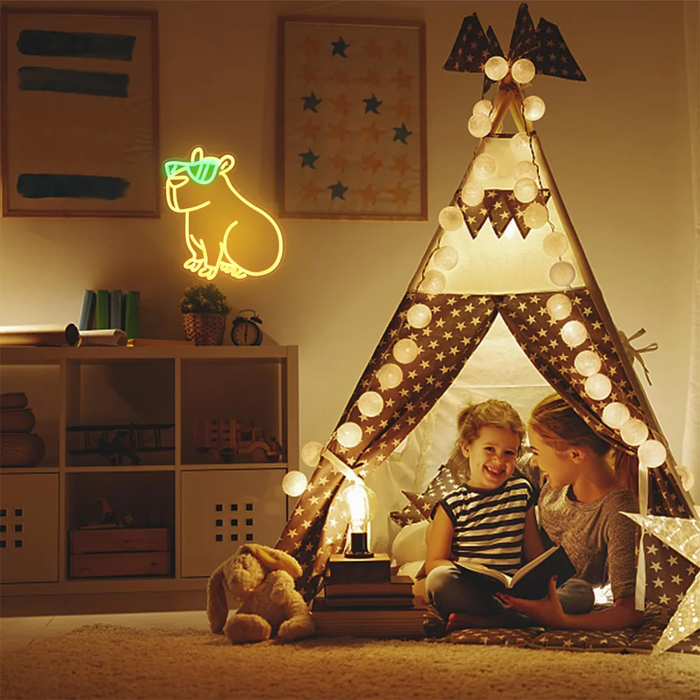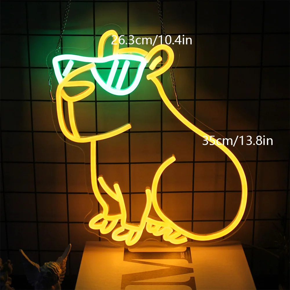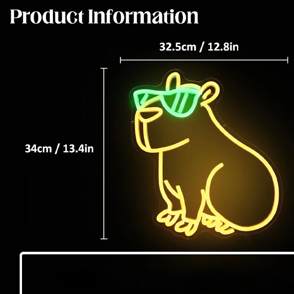 Cool Capybara Neon Sign Cute Animal with Glasses Yellow Green LED Signs for Chil