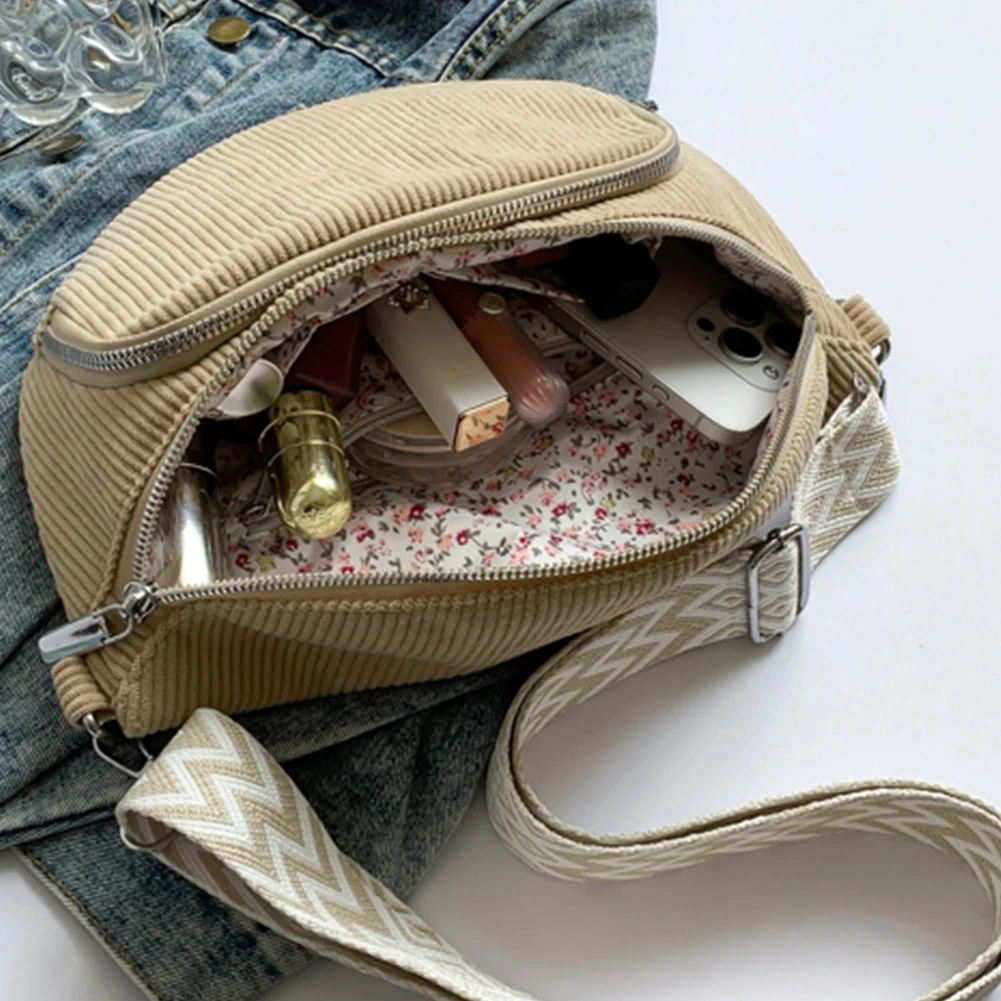 Corduroy Chest Bag Fashion Fanny Pack Wide Guitar Strap Stylish Crossbody Bag Mu
