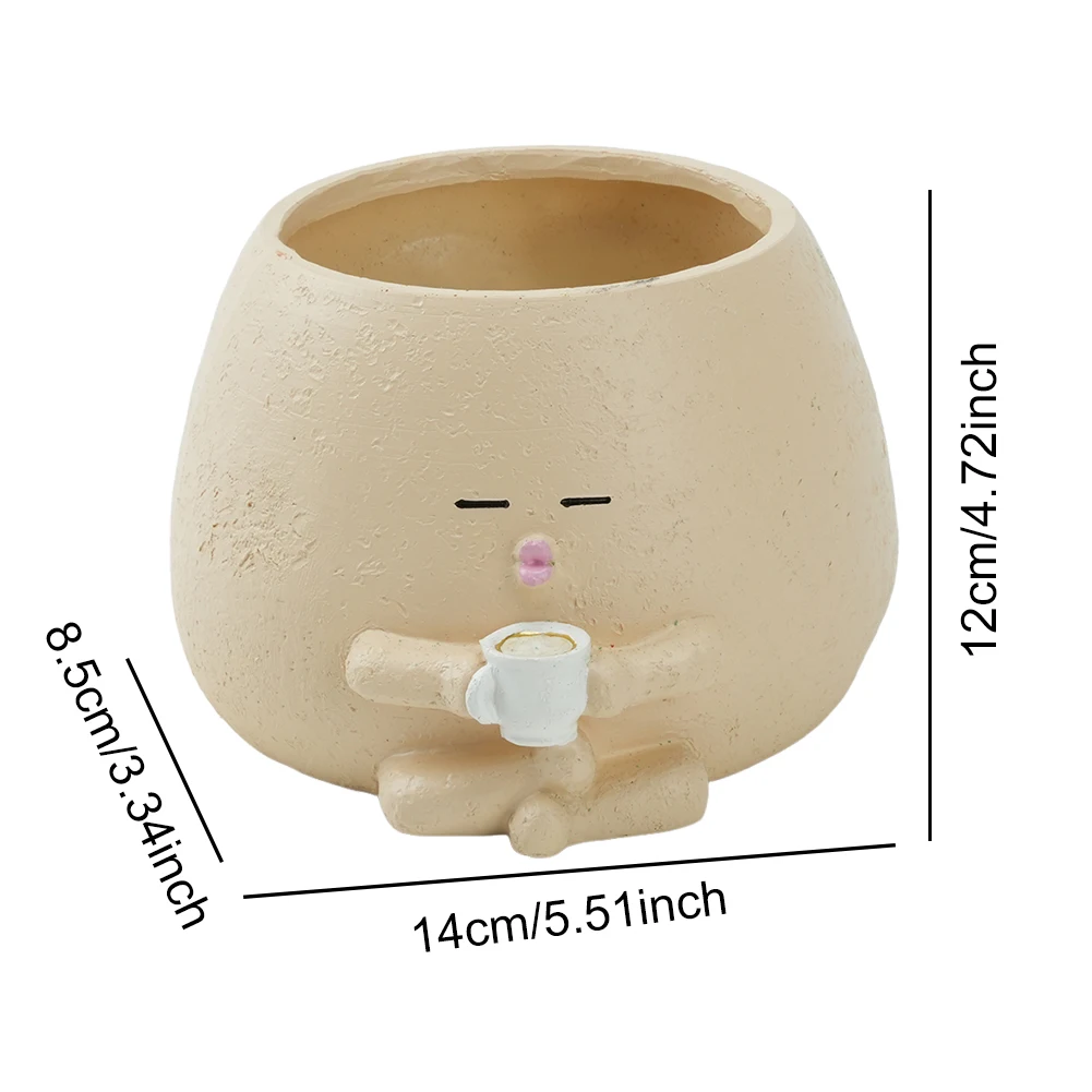 Smily Coffee Cup Planter with Drainage Hole Cute Flower Head Planter Resin Creative Succulent Plant Pots for Indoor Outdoor Plants Features: 1.Charming Character Design: The playful smily coffee cup planter features a lively character with a pouting expression, sitting cross-legged. Its whimsical style brings delight and adds a touch of humor to your space. 2.Sturdy Resin Material: Crafted from premium eco-friendly resin, this cute flower head planter boasts a smooth finish, vibrant colors, and resists fading or deformation, ensuring long-lasting beauty. 3.Dual Functionality: This creative succulent plant pots serve as both a decorative item and a functional plant holder, perfect for small plants or succulents, offering a blend of ornamentation and practicality. 4.Compact Size, Flexible Placement: The decorative flower pots' compact design allows easy placement on desks, windowsills, bookshelves, etc., making it an ideal decoration for home or office spaces. 5.Innovative Home Decor: With its distinctive design and detailed craftsmanship, these succulent pots ornament add a touch of creativity and personality to any setting, enhancing the aesthetic appeal of homes, offices, and cafes. Specification: Origin: Mainland China Size: 140.00x120.00x85.00mm/5.46*4.68*3.32in Packaging size: 175.00x155.00x120.00mm/6.83*6.05*4.68in Net weight: 250g Gross weight: 336g Material: Resin Is there a leak hole: Yes Is there a plug: Yes Packaging: Kraft paper box polystyrene Note: 1*Smily Coffee Cup Planter ![]() ![]() ![]() ![]() ![]() ![]() |