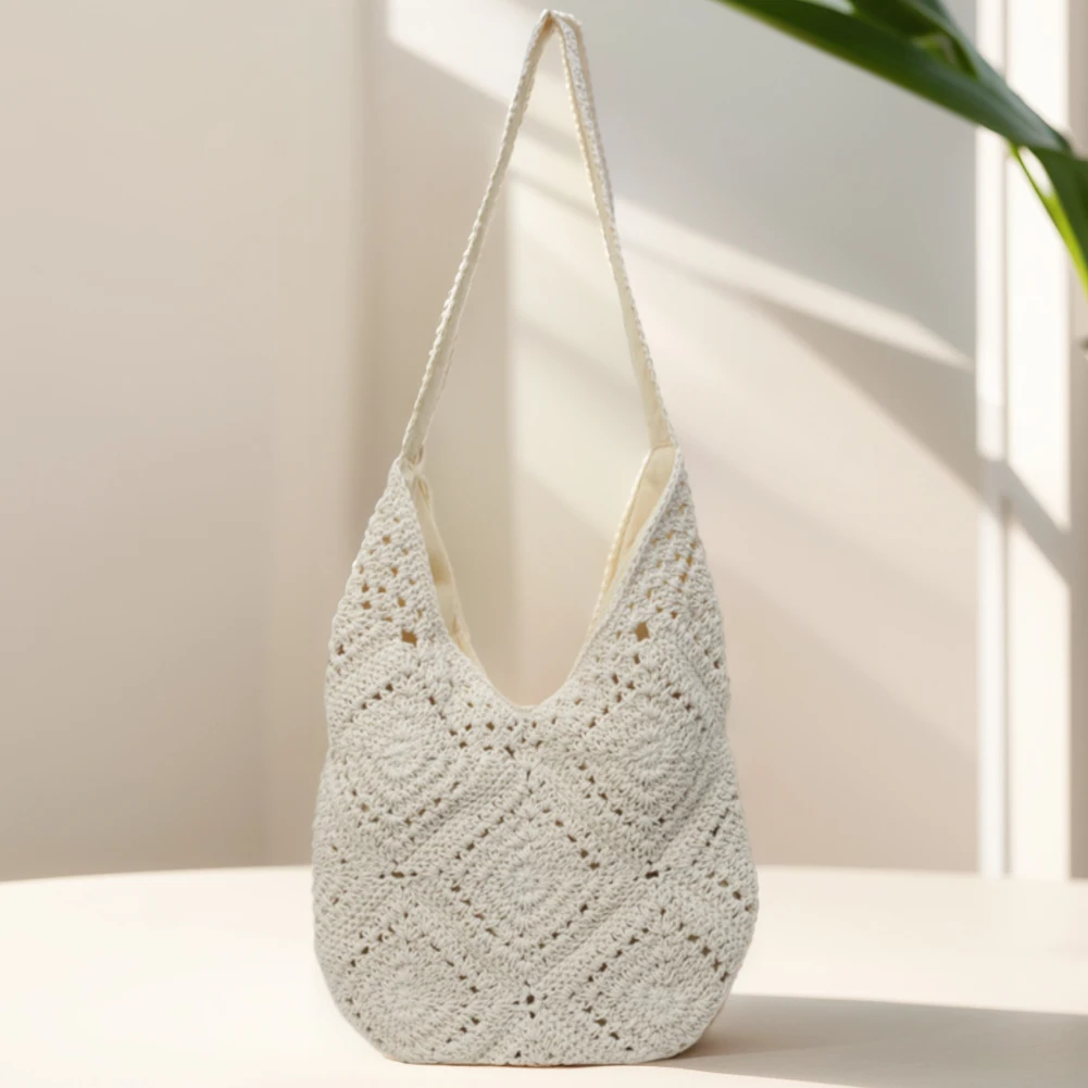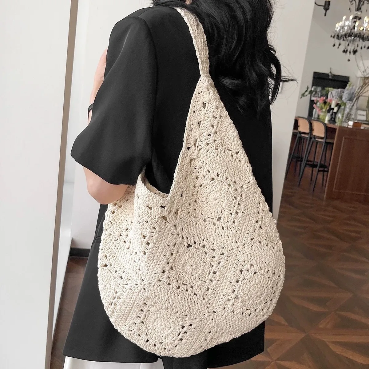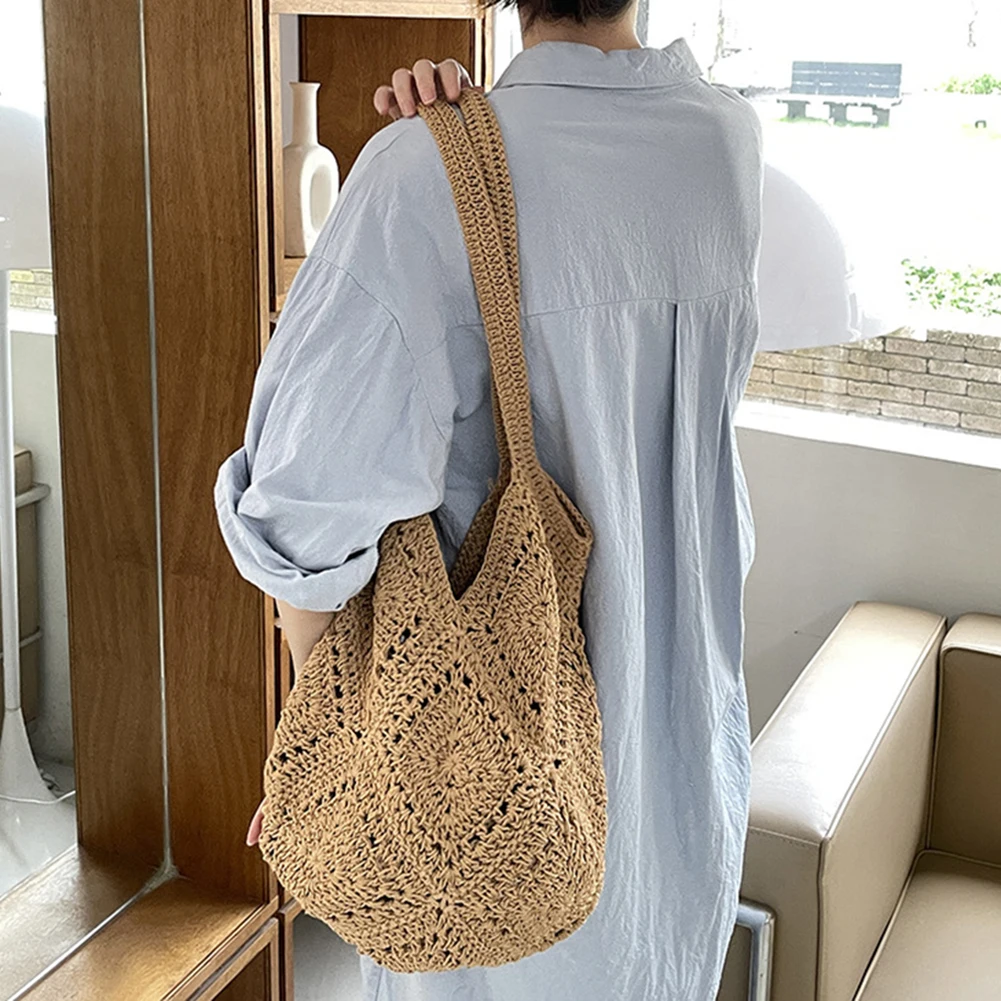Crochet Shoulder Bag Soft Large Summer Beach Bag Woven Shoulder Purse Hollow for Women Summer Vacation