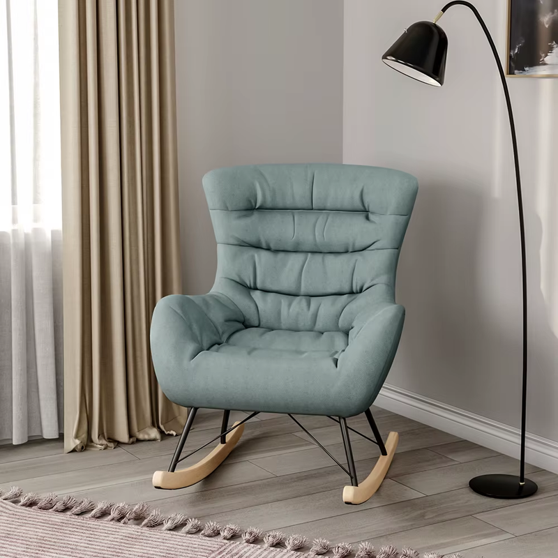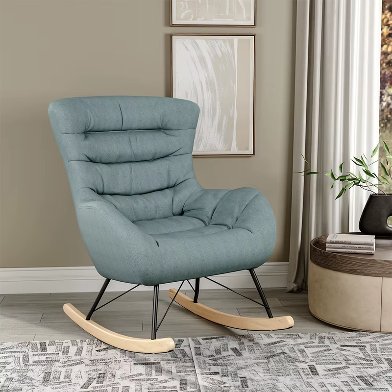 Cyan Wooden Rocking Chair for Living Room Bedroom