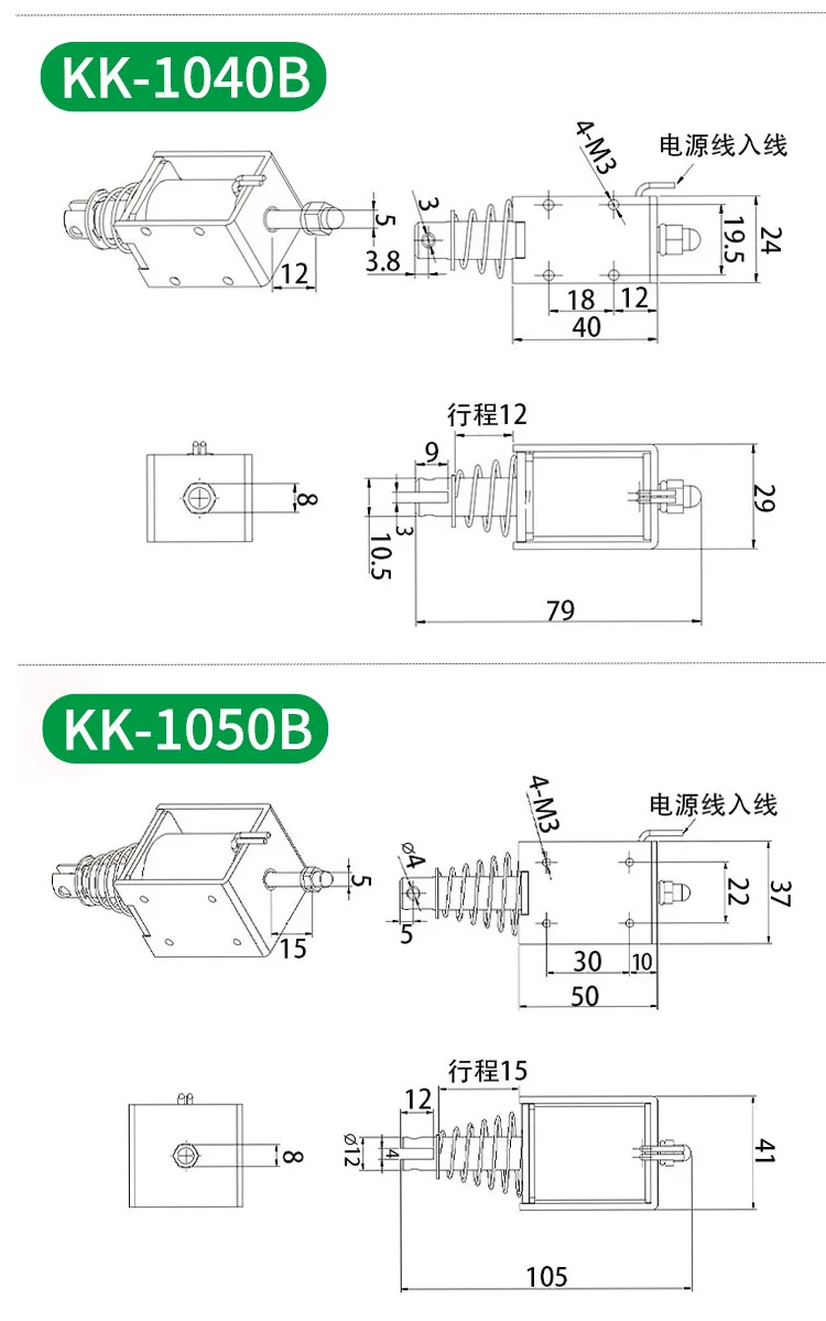 Connect the power supply, insert the movable iron core into the coil, power on and push it out, disconnect the power supply, the force disappears, and the movable iron core is automatically reset by the spring.