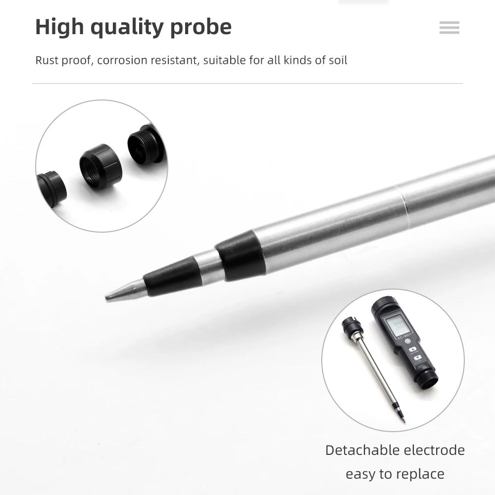 3. High-quality detachable probe electrode: replaceable, more convenient for maintenance, rust-resistant, corrosion-resistant, and suitable for various soils.