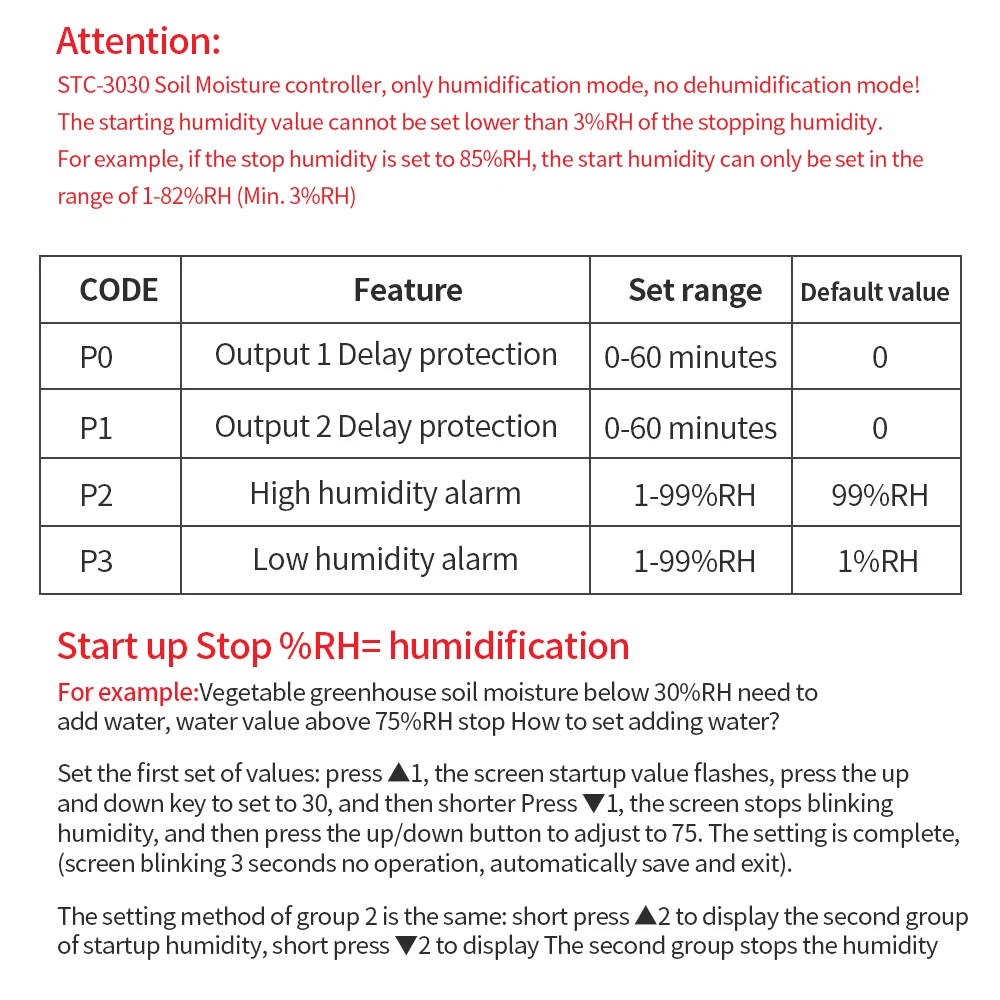 STC-3031 Soil Humidity Controller 220V, 2 soil sensor cable, single-channel control;