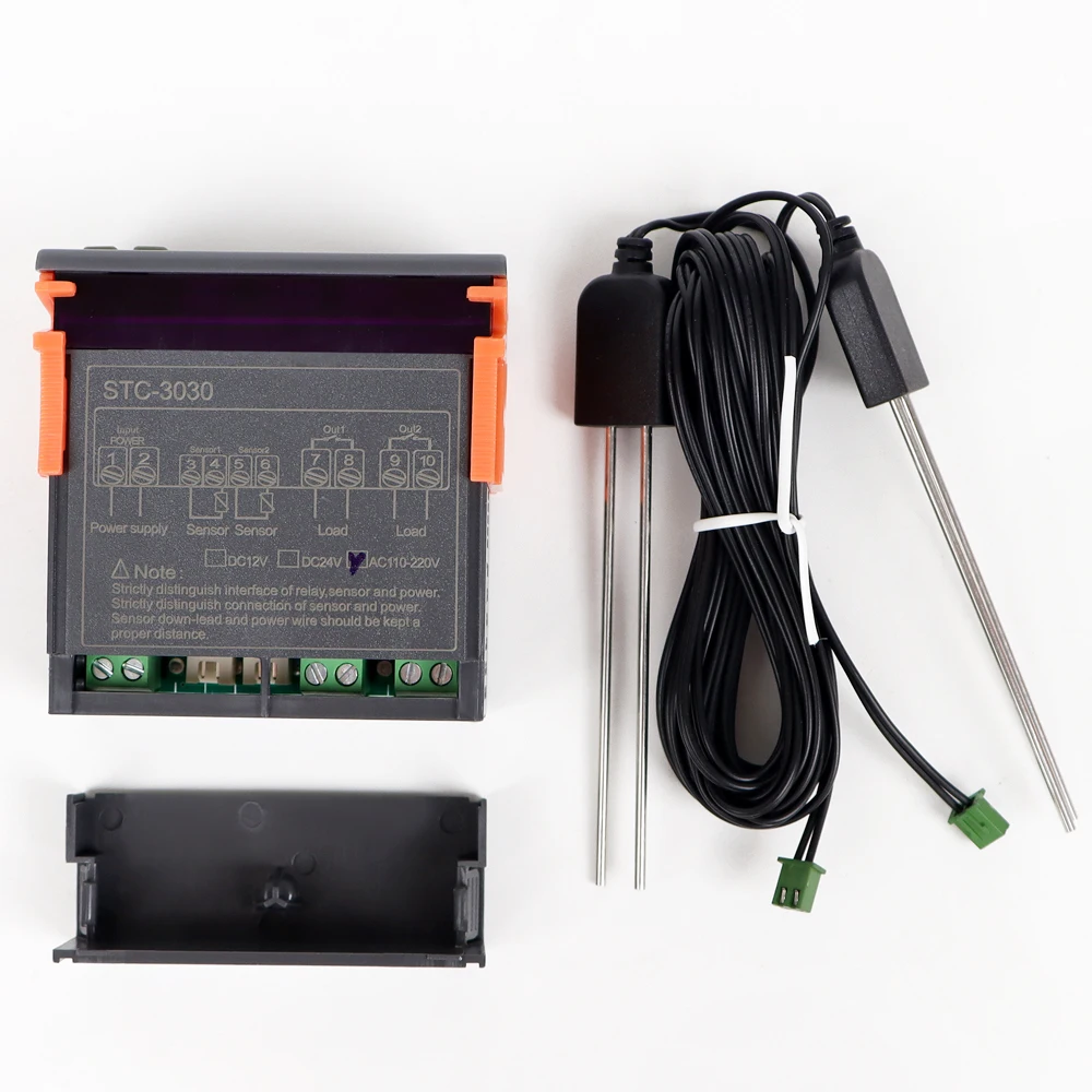 STC-3030 Soil Humidity Controller 220V, 2 soil sensor cable, dual-channel control;
