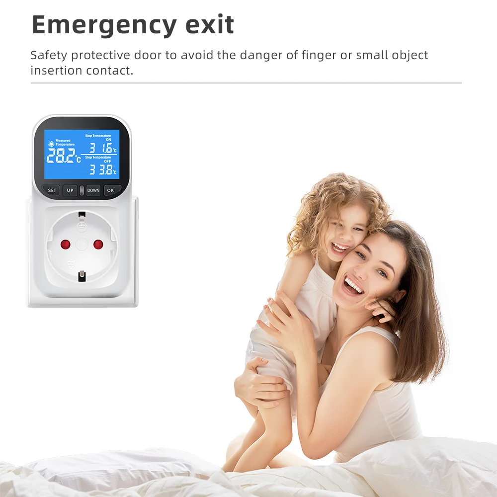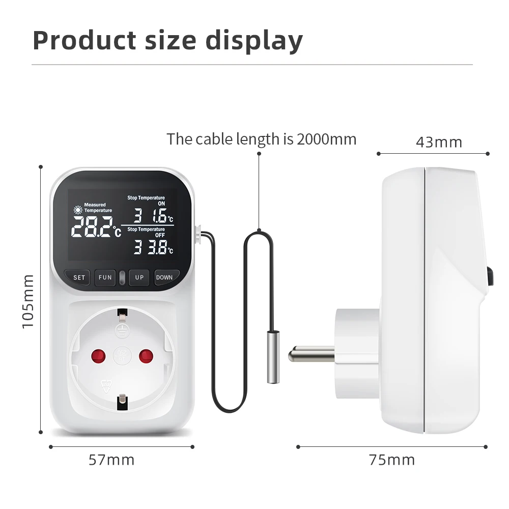 Digital Temperature Controller Socket Outlet Thermostat With Timer Sensor Probe Heating Cooling Switch 16A Backlight EU Plug