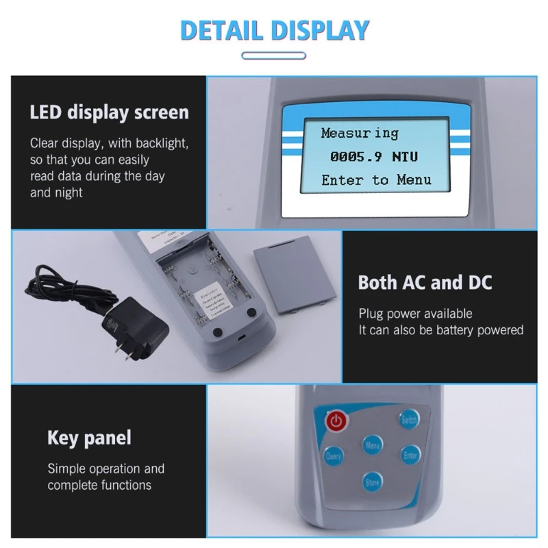 The instrument is calibrated by turbidity standard solution , and NTU is used as turbidity measurement unit, high accuracy
