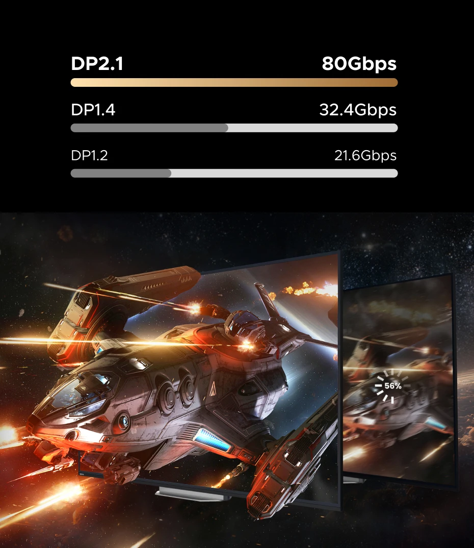 Displayport 2.1 Cable 16K 8K 4K 60Hz DP to DP Video Audio Cord HDR High Refresh